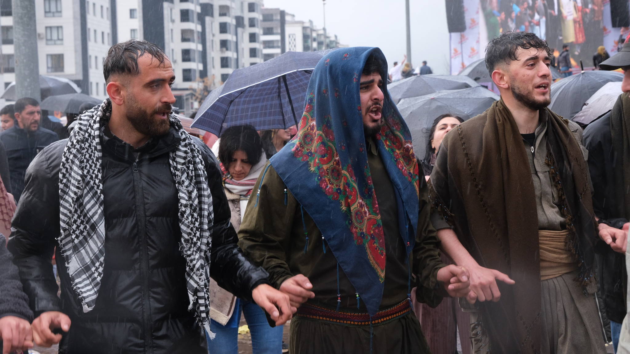 Yağmura rağmen halaylar durmadı. Kimi zaman sahneden yükselen ezgilere, kimi zaman sloganlara eşlik edildi. Agirê Jiyan’ın 23 yıl sonra Diyarbakır sahnesine çıkması, kuşaklar arasında görünmeyen bir köprünün hâlâ canlı olduğunu gösterdi.