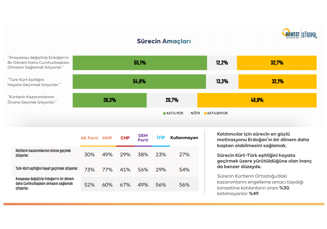 Yeni süreçte Türkiye toplumunun algı, kanaat ve tutumlarının ölçüldüğü araştırmanın sonuçlarını Rawest Araştırma Genel Müdürü Roj Giresun açıkladı.