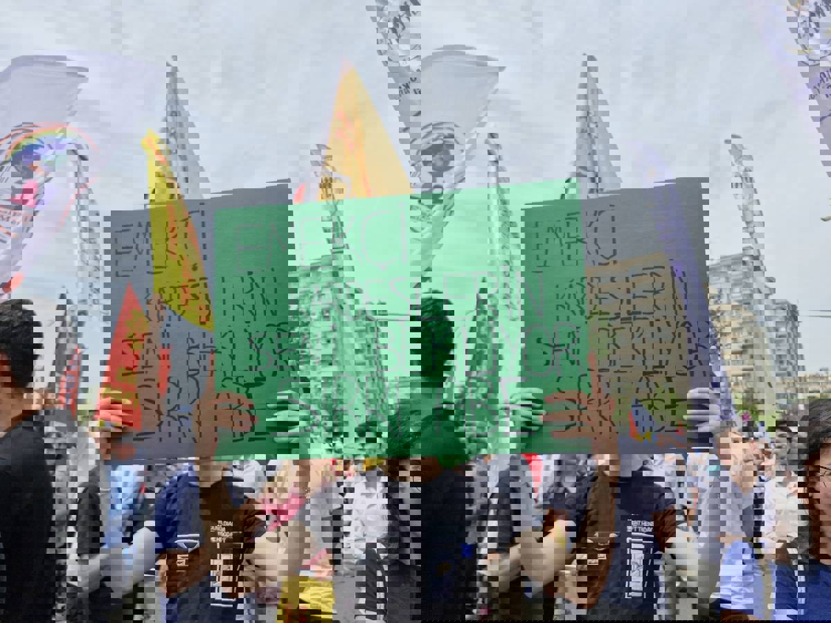 Diyarbakır'da mitinge katılan bir gencin talebi ise halen hastanede tedavisi süren TBMM Grup Başkanvekili ve DEM Parti İstanbul Milletvekili Sırrı Süreyya Önder'in iyileşmesiydi
