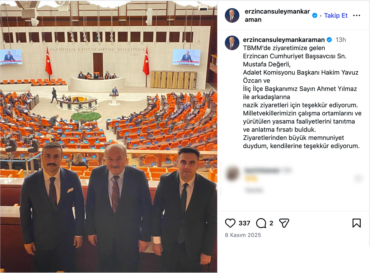 Taşçı, bu talebin gerekçelerinden birinin mahkeme başkanının tarafsızlık ilkesini ihlal etmesi olduğunu söyledi. Taşçı, “Mahkeme başkanının (Yavuz Özcan) İliç AKP İlçe Başkanıyla birlikte Türkiye Büyük Millet Meclisi’nde (TBMM) AKP Erzincan Milletvekili’ni (Süleyman Karaman) ziyaret ettiğini gördük. Bir de fotoğraf paylaşmışlar” dedi.