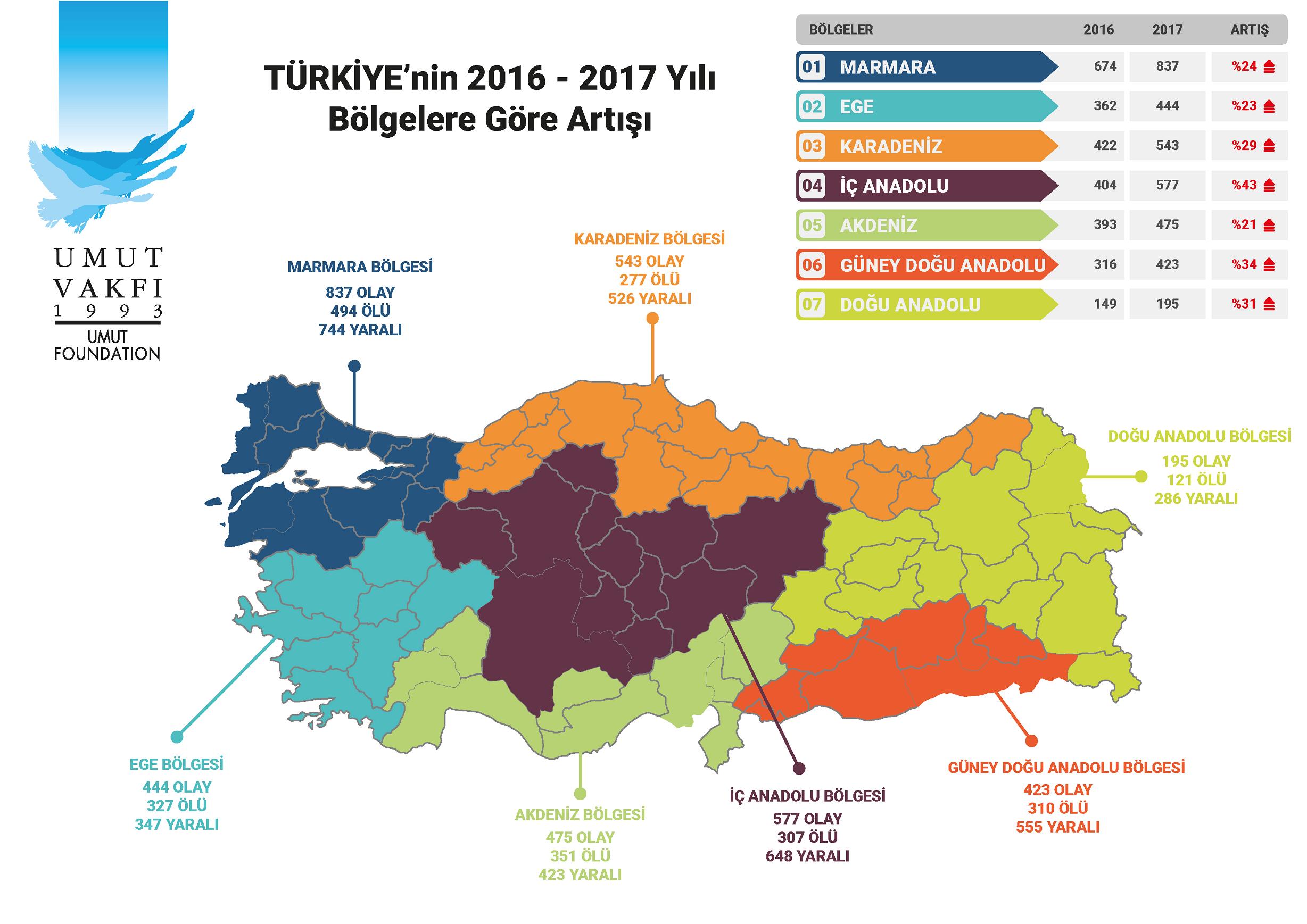 * Tüm illerdeki olay sayıları ve bu olaylardaki toplam ölü, yaralı sayılarıyla ilgili bilgi için tıklayın.