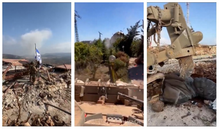 Sosyal medyada paylaşılan video görüntüleri, İsrail askerlerinin Marun el-Ras’taki İran Bahçesi’ne İsrail bayrağı diktiğini, bahçedeki bitkileri ezdiğini, altyapıyı ve bir heykeli yıktığını gösteriyor.