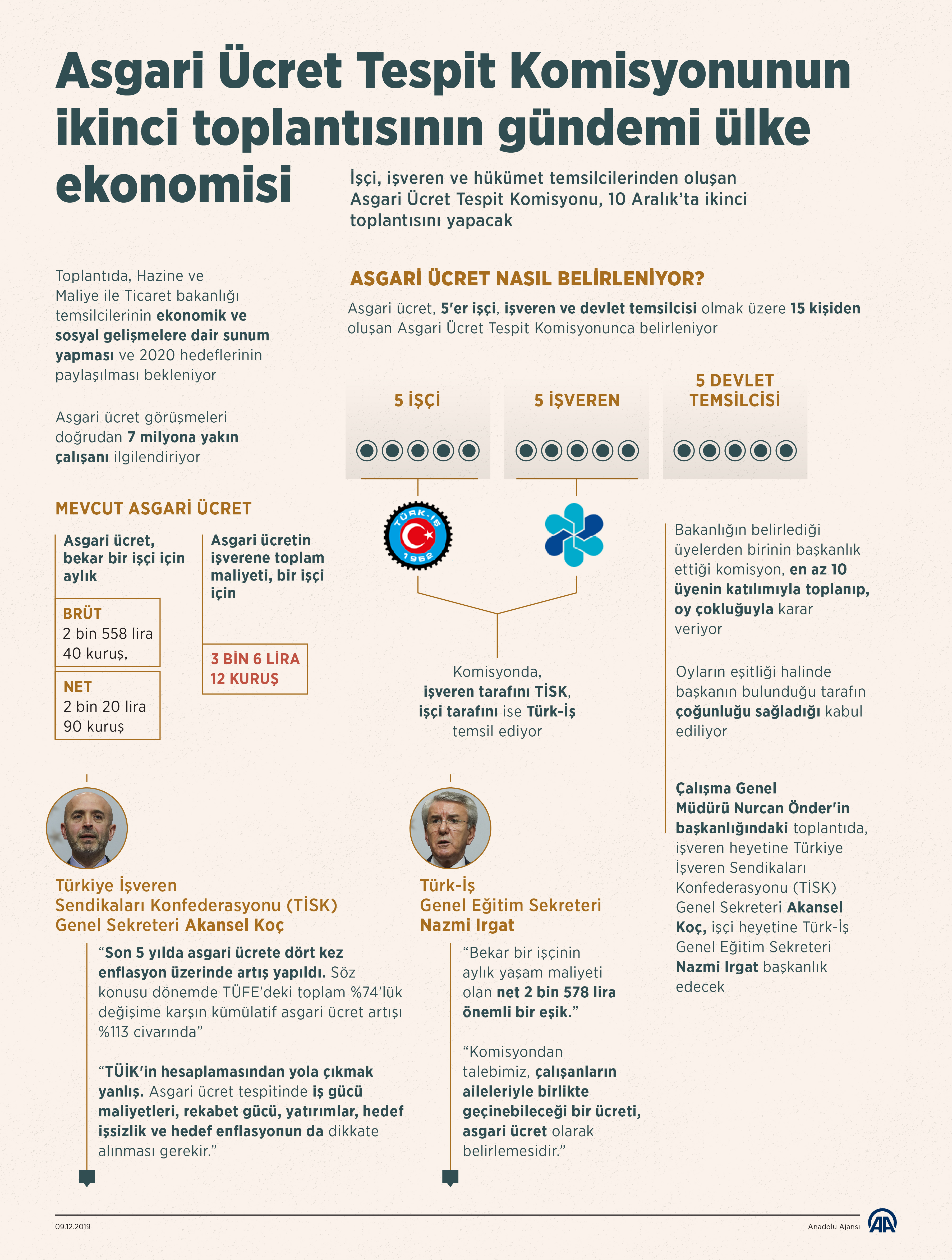 Komisyon, 2020'de geçerli olacak asgari ücreti belirleme görüşmeleri kapsamında üçüncü toplantısını 17 Aralık'ta TİSK'in ev sahipliğinde yapacak.