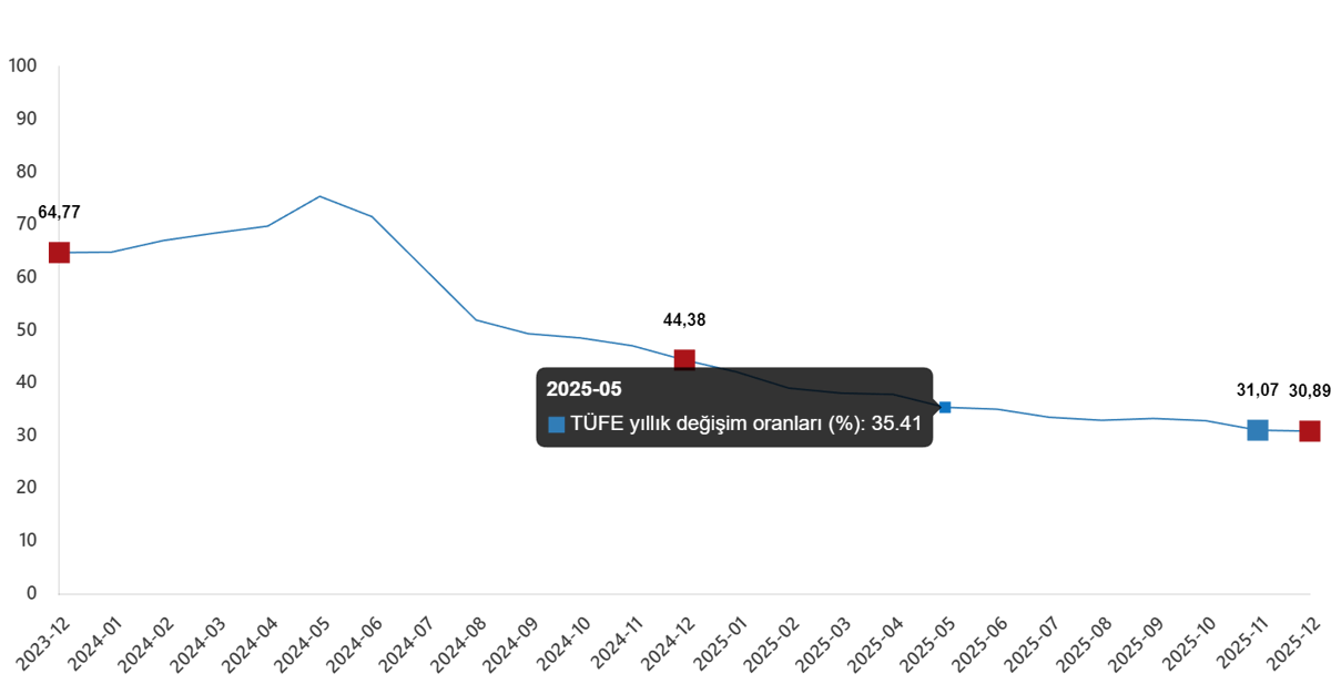 TÜFE yıllık değişim oranları (%), Aralık 2025