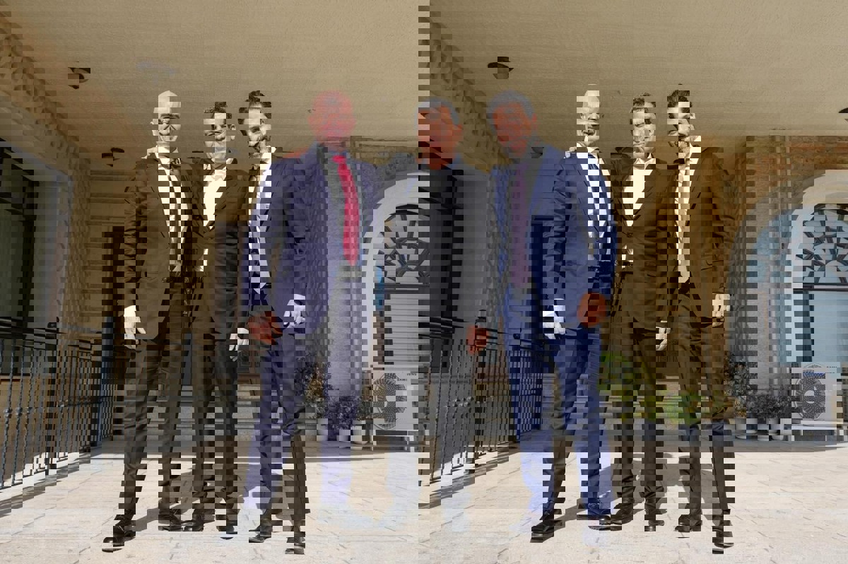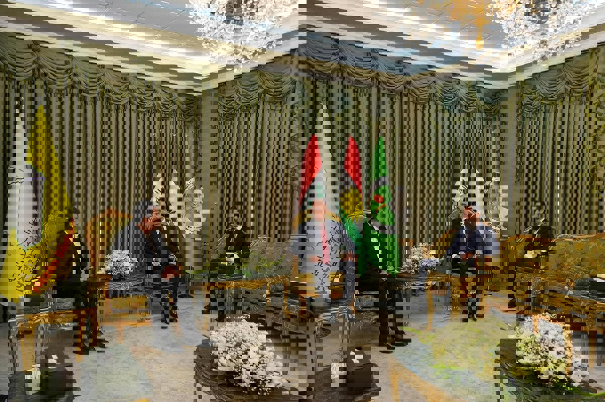 Fermandarê Giştî yê HSD’ê Mazlûm Ebdî, Serokê YNK’ê Bafil Celal Talebanî û Nûnerê Taybet yê DYA'yê Tom Barrack li bajarê Silêmaniyê yê Herêma Federe ya Kurdistanê civiyan.
