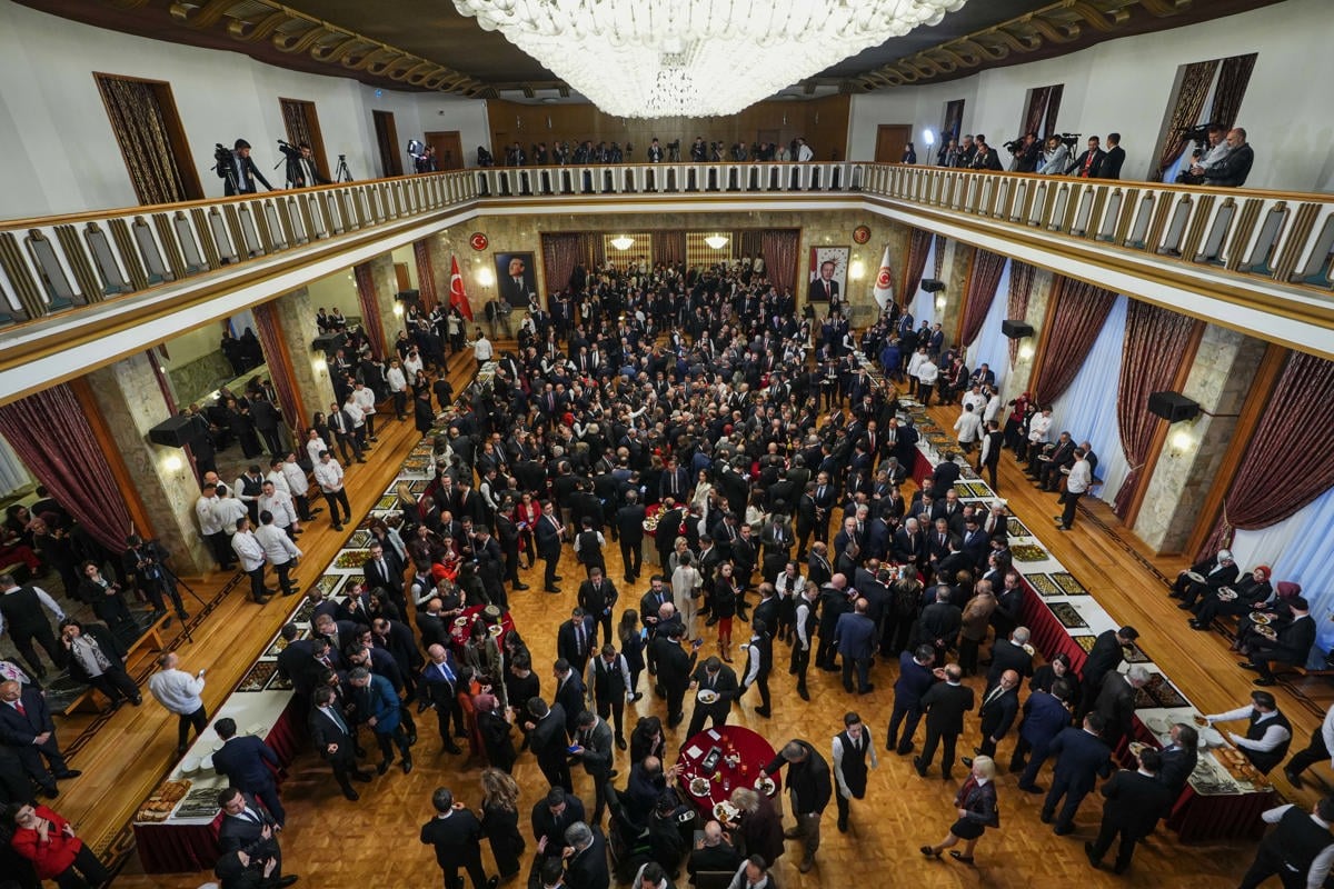 Resepsiyonda, Cumhurbaşkanı Recep Tayyip Erdoğan, CHP Genel Başkanı Özgür Özel, MHP Genel Başkanı Devlet Bahçeli, DEM Parti Eş Genel Başkanı Tuncer Bakırhan, Saadet Partisi Genel Başkanı Mahmut Arıkan, DEVA Partisi Genel Başkanı Ali Babacan, BBP Genel Başkanı Mustafa Destici ve Demokrat Parti Genel Başkanı Gültekin Uysal da yer aldı.