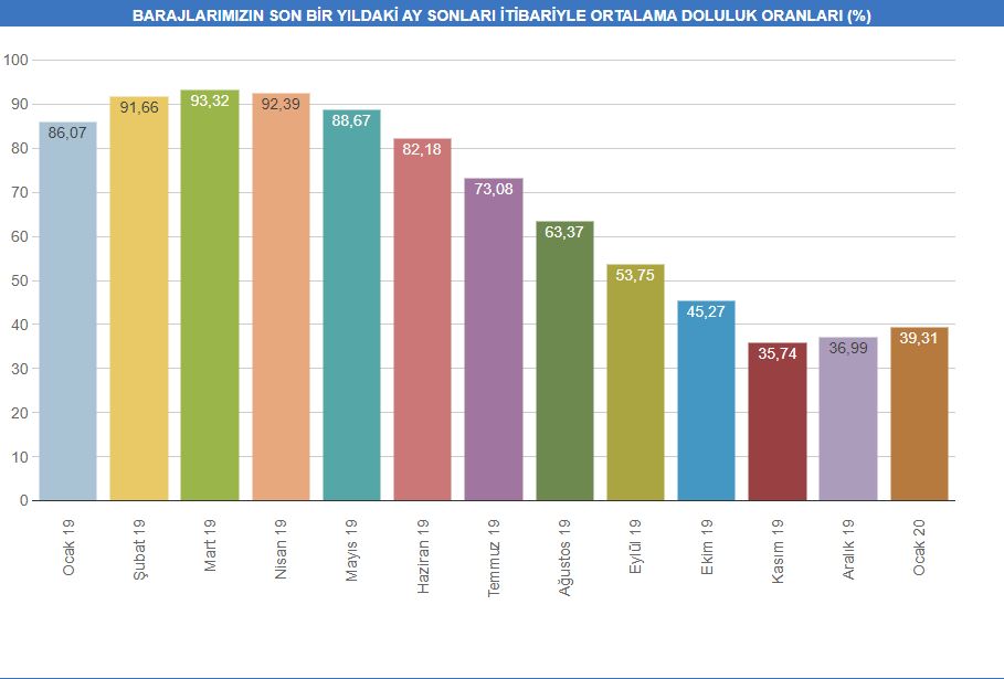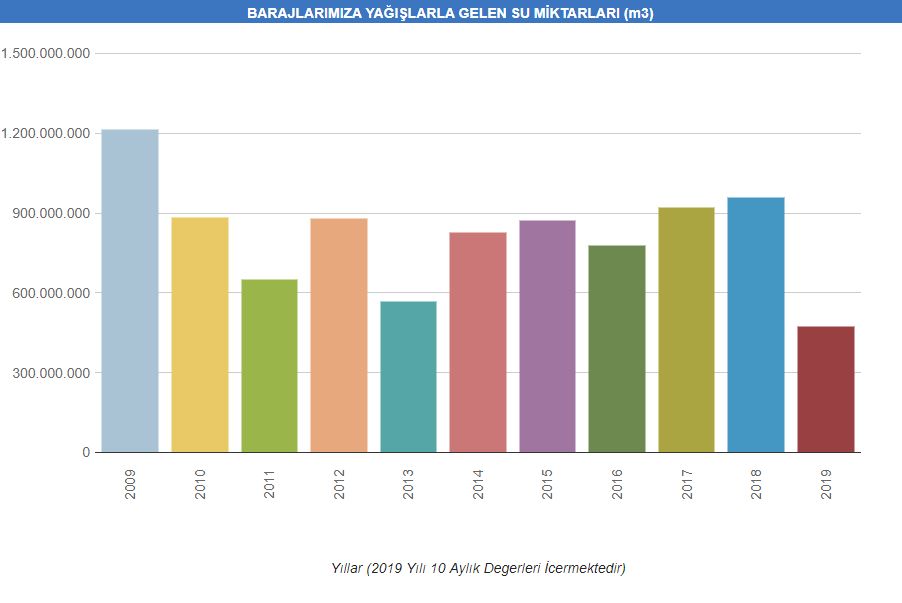 Barajlara su miktarı da 2019’un ilk 10 aylık değerlendirmesine göre, 600 milyon metreküpün altında 472 milyon 851 bin civarında gerçekleşerek son 10 yılın en düşük seviyesine ulaştı.