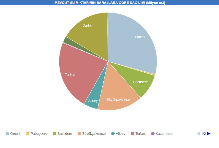 Mevcut su miktarının barajlara göre dağılımında ise ilk sırada Ömerli Barajı var. 6 Ocak itibariyle barajların mevcut su miktarları şöyle: