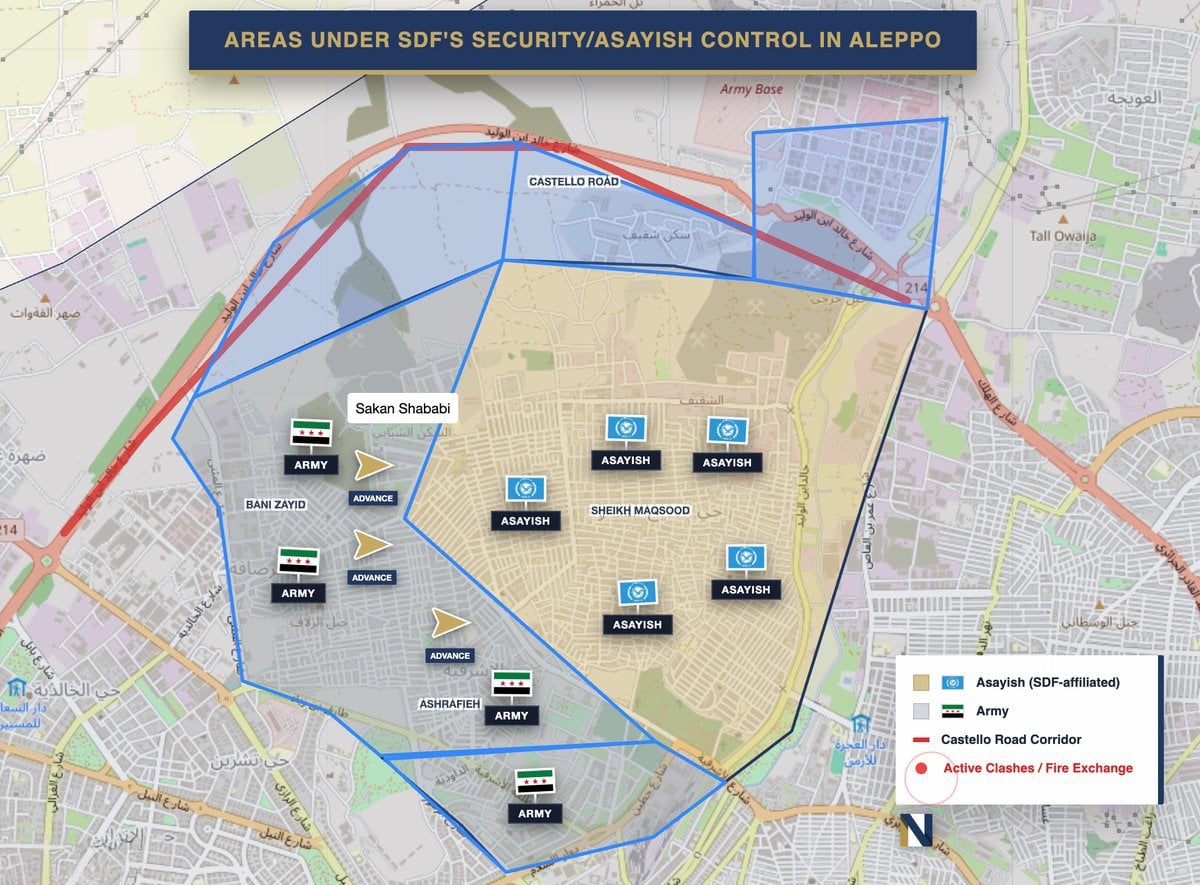 Halep Enformasyon Müdürlüğü, Şeyh Maksud’daki Kürt güçlerinin hafif bireysel silahlarıyla birlikte Suriye’nin kuzeydoğu bölgelerine nakledileceğini duyururken, Şeyh Maksud ve Eşrefiye Genel Meclisi ‘seferberlik’ kararı aldı.