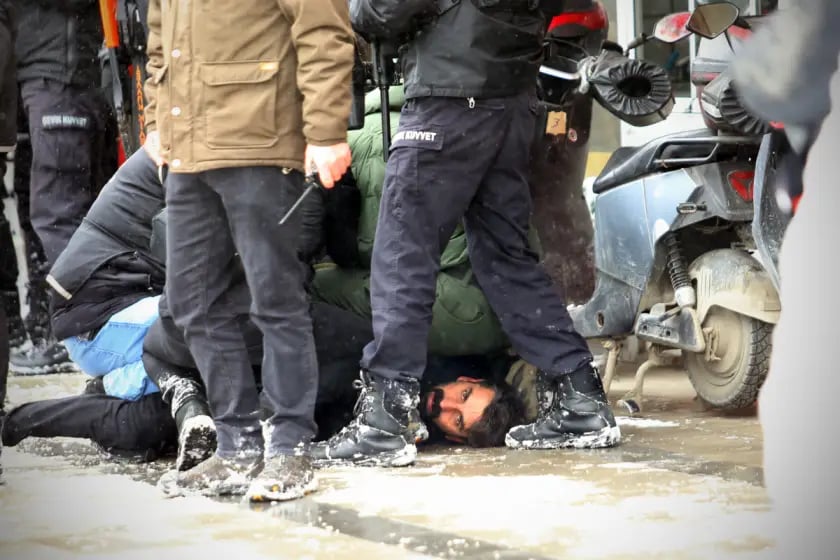 Adnan Bilen Mezopotamya Ajansı’nda yayımlanan “Postal altında tanıklık!” adlı fotoğrafıyla Fotoğraf Ödülü’nü aldı. Fotoğraf, Rojava’ya yönelik saldırılara karşı yapılan protesto gösterilerinde yaşanan hak ihlallerini raporlamak için alanda bulunan Türkiye İnsan Hakları Vakfı (TİHV) Temsilcisi Emrah Kertiş’in maruz kaldığı muameleyi yansıtıyor.