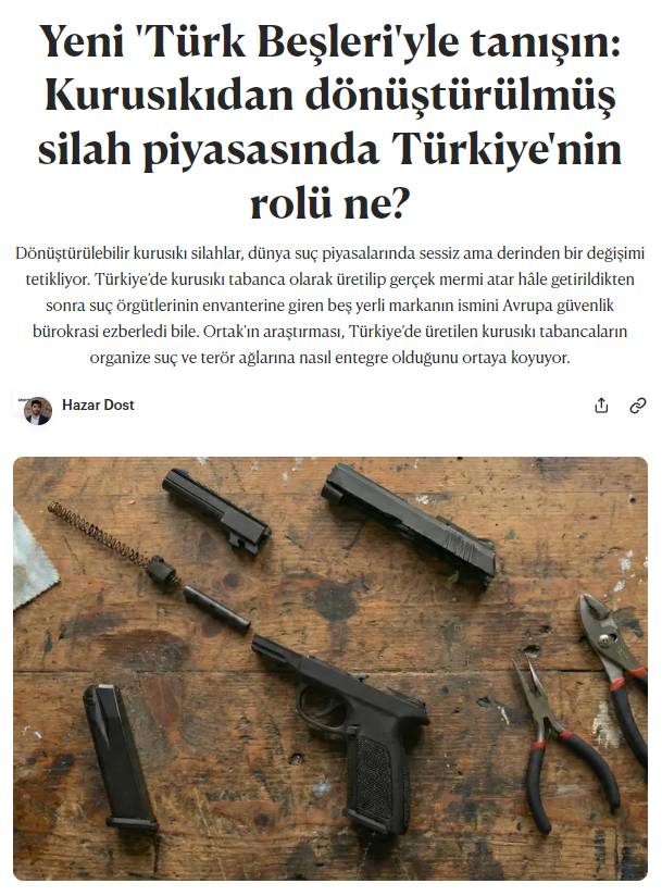 Hazar Dost, Aposto’da “Yeni 'Türk Beşleri'yle tanışın: Kurusıkıdan dönüştürülmüş silah piyasasında Türkiye'nin rolü ne?” başlığıyla yayımlanan haberiyle Yazılı Haber Ödülü’nü kazandı. Türkiye’de üretilen gerçek mermi atar hale dönüştürülebilir kurusıkı silahların, suç örgütlerinin envanterine girdiğini anlatan Dost’un haberi, aynı zamanda bir “araştırmacı gazetecilik” örneği.