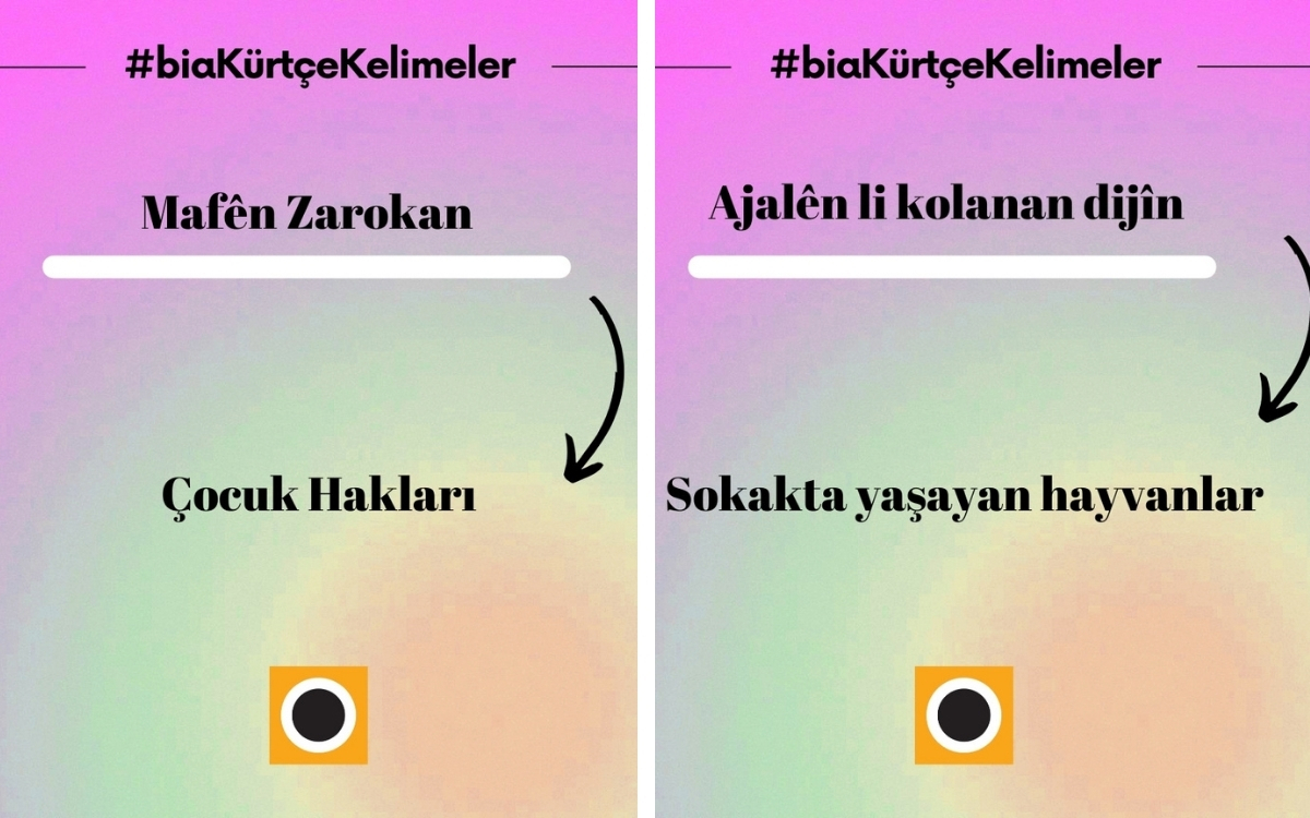 Hazırladığımız Kürtçe kelime kartlarıyla hem dilin günlük kullanımını görünür kılmayı hem de tarihsel ve politik bağlamda yaşanan anadili adaletsizliğine dikkat çekmeyi hedefliyoruz.