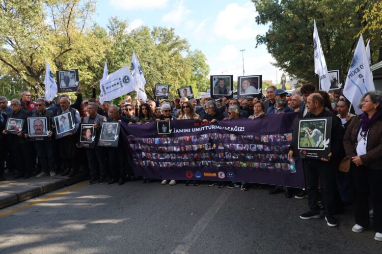 Sendîkaya Kedkarên Şoreşger (DÎSK), Konfedarasyona Sendîkayên Karkerên Cameweriyê (KESK), Odaya Avahîsaz û Endezyaran a Tirk (TMMOB), Yekitiya Bijîşkan a Tirk (TTB) û Komeleya Aştiyê ya 10ê Cotmehê, di salvegara komkujiya 10ê Cotmehê de li cihe ku komkujî pêk hatibû bernameya bîranînê li dar xistin.