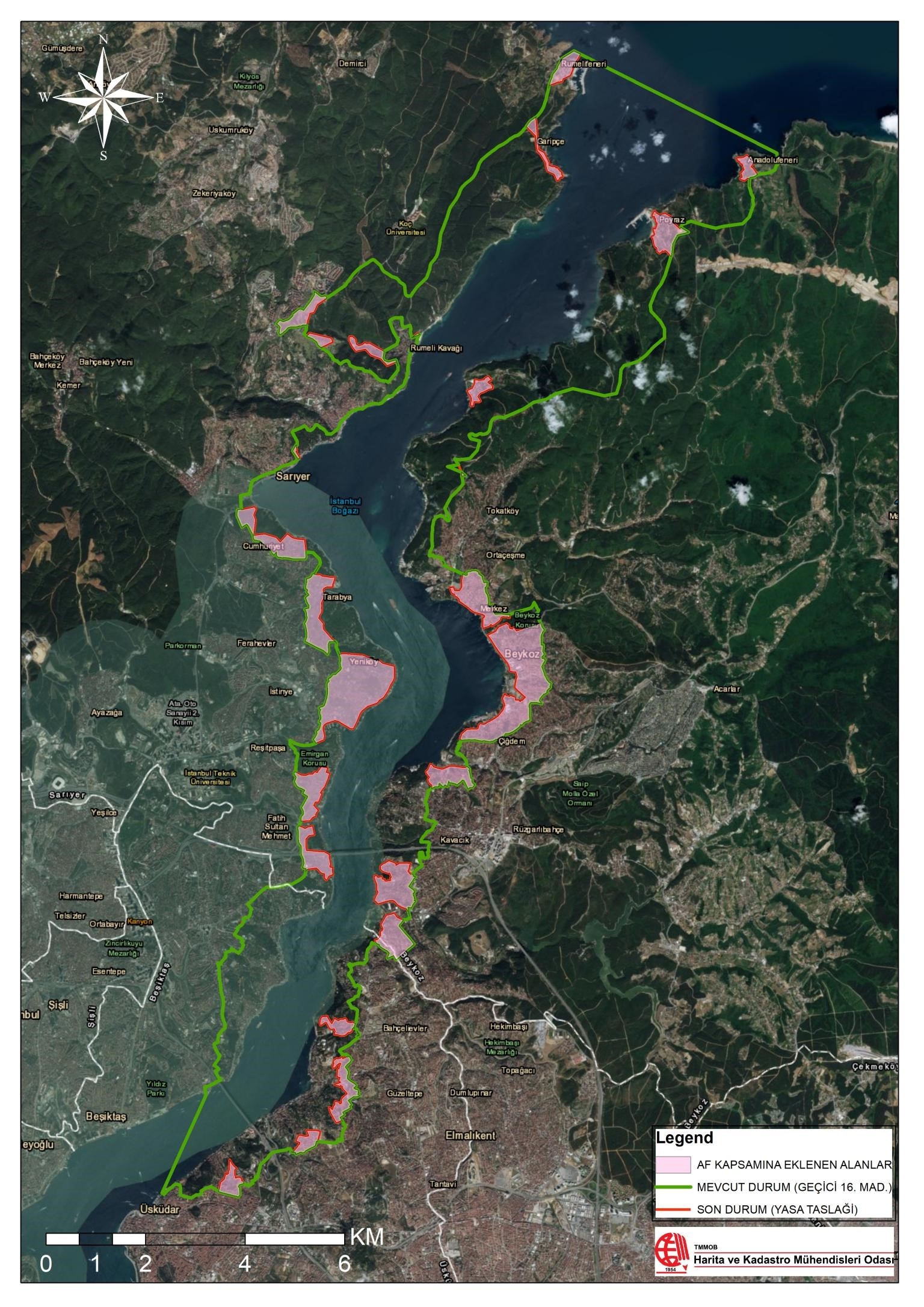 Yasayla beraber öngörünümden çıkarılan 40’tan fazla mahalle imar barışına dahil edildi. 2 bin 500’e yakın koordinat noktası verilerek imara dahil edilen Sarıyer, Beykoz ve Üsküdar’daki 40’tan fazla mahalle artık Boğaziçi Kanunu’na tabi olmayacak.