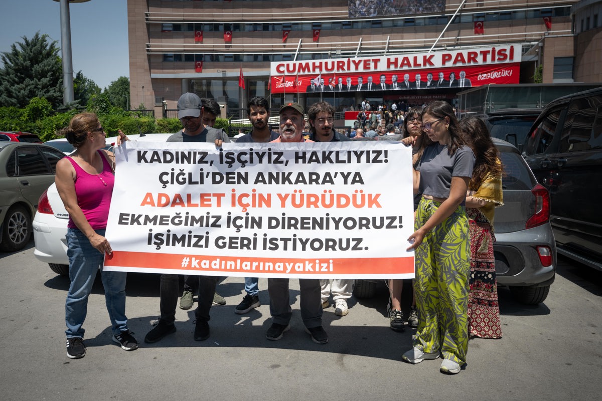 Anadolu Ajansı'nda yer alan habere göre, grup adına konuşan işçilerden Hale Ören Özdinçer, 2024'te işten çıkarıldıklarını, işe iade edilmeyen 16 arkadaşıyla mücadelelerine devam ettiklerini söyledi.