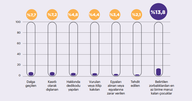 - Akran zorbalığı konusunda TÜİK en son 2022 yılında detaylı veri paylaşımında bulundu. Bu verilere göre, 6–17 yaş grubundaki çocukların yaklaşık yüzde 13.8’i, ayda birkaç kez akran zorbalığına maruz kalıyor.
