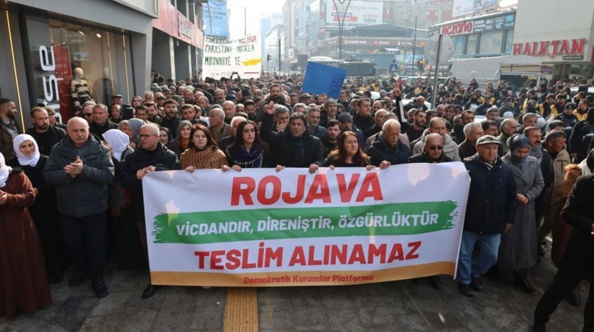 Protests also took place across several provinces in Turkey, including Diyarbakır, Hakkari, Bingöl, Şırnak, Van, Mardin, and Dersim. In Diyarbakır, protesters marched from Koşuyolu Park to AZC Plaza, chanting slogans against the Hayat Tahrir al-Sham (HTS) group.