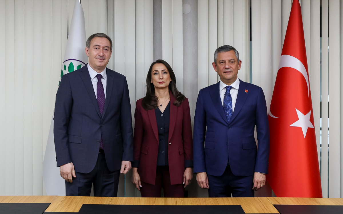 Görüşme DEM Parti’nin Balgat’taki binasında gerçekleşiyor. DEM Parti Eş Genel Başkan Yardımcısı Mehmet Rüştü Tiryaki ve Merkez Yürütme Kurulu (MKY) üyesi Elif Bulut, Özel ve beraberindeki heyeti kapıda karşıladı.