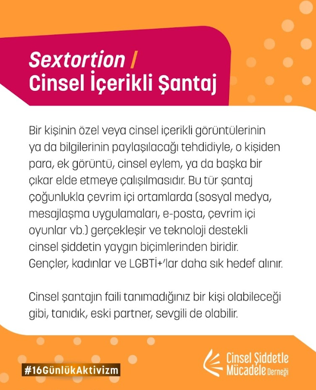Dijital flört şiddetinin farklı biçimlerinden biri de sextortion; yani cinsel içerikli şantaj.
