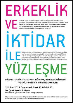 Cinsiyet Ayrımcılığından, Heteroseksizmden ve Eril Şiddetten Rahatsız Erkekler grubu "Erkeklik ve iktidar ile yüzleşme" başlıklı bir atölye çalışması yapacaklarını duyurdu.