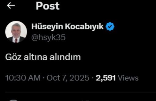 AKP ve Cumhurbaşkanı Recep Tayyip Erdoğan hakkında yaptığı açıklamalarla son günlerde gündeme gelen eski AKP İzmir Milletvekili Hüseyin Kocabıyık, sosyal medya hesabından yaptığı paylaşımla gözaltına alındığını duyurdu. Kocabıyık, akşam saatlerinde "cumhurbaşkanına hakaret"ten tutuklandı.