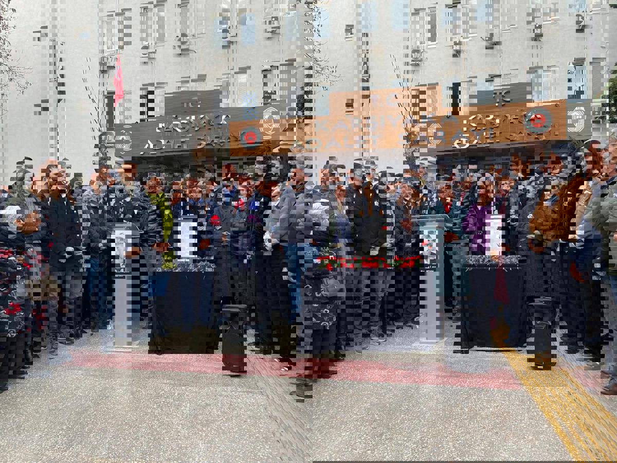 Diğer yandan meslektaşları Ali Aydın için Karşıyaka Adliyesi önünde bir araya geldi. Burada yapılan açıklamaya Aydın'ın ailesi, İHD Eş Genel Başkanı Cihan Aydın, İzmir Barosu Başkanı Sefa Yılmaz, Halkların Eşitlik ve Demokrasi Partisi (DEM Parti) Eş Genel Başkanı Öztürk Türkdoğan, siyasi parti ve sivili toplum kurumu temsilcileri yanı sıra çok sayıda kişi katıldı. Açıklamada "Ali Aydın onurumuzdur" ve "İHD susmadı susmayacak" sloganları atıldı.