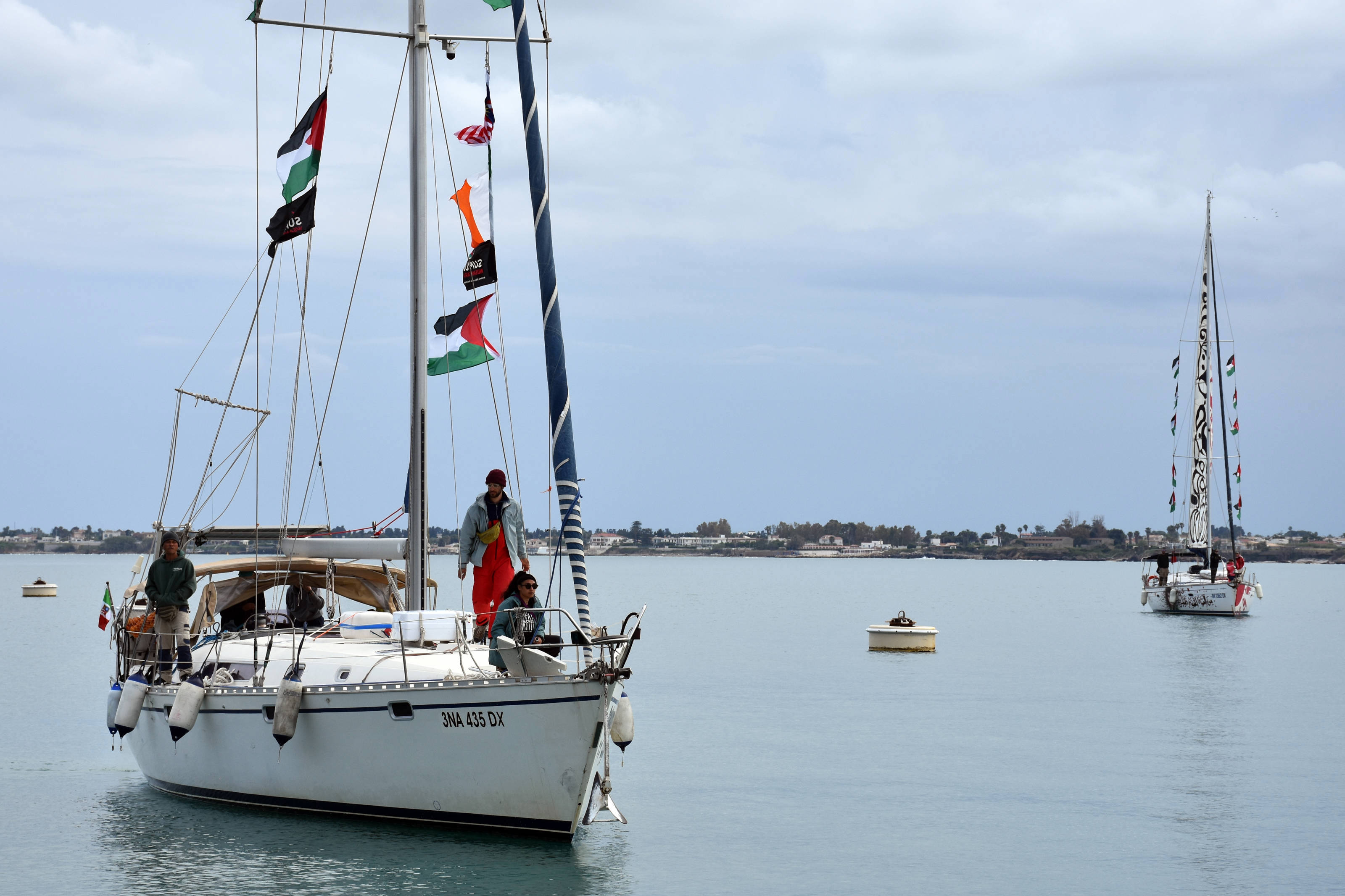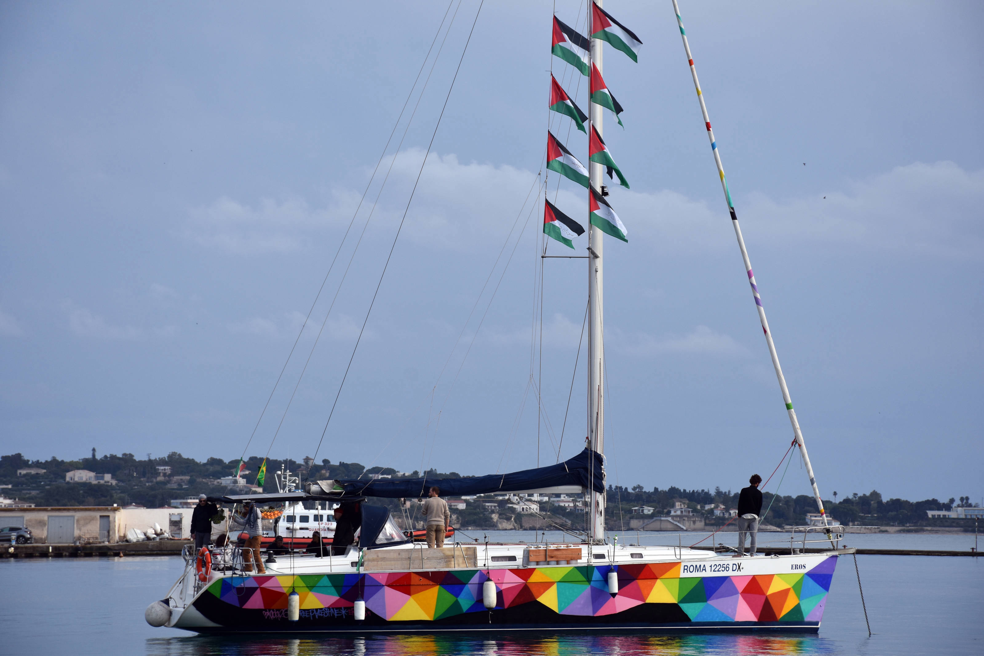 Keştiyên ku bi alayên Fîlîstînê û bi nexşên taybet hatibûn xemilandin, li beravê ji aliyê alîgirên Fîlîstînê ve bi dirûşmên 'Fîlîstîna Azad' hatin pêşwazîkirin.