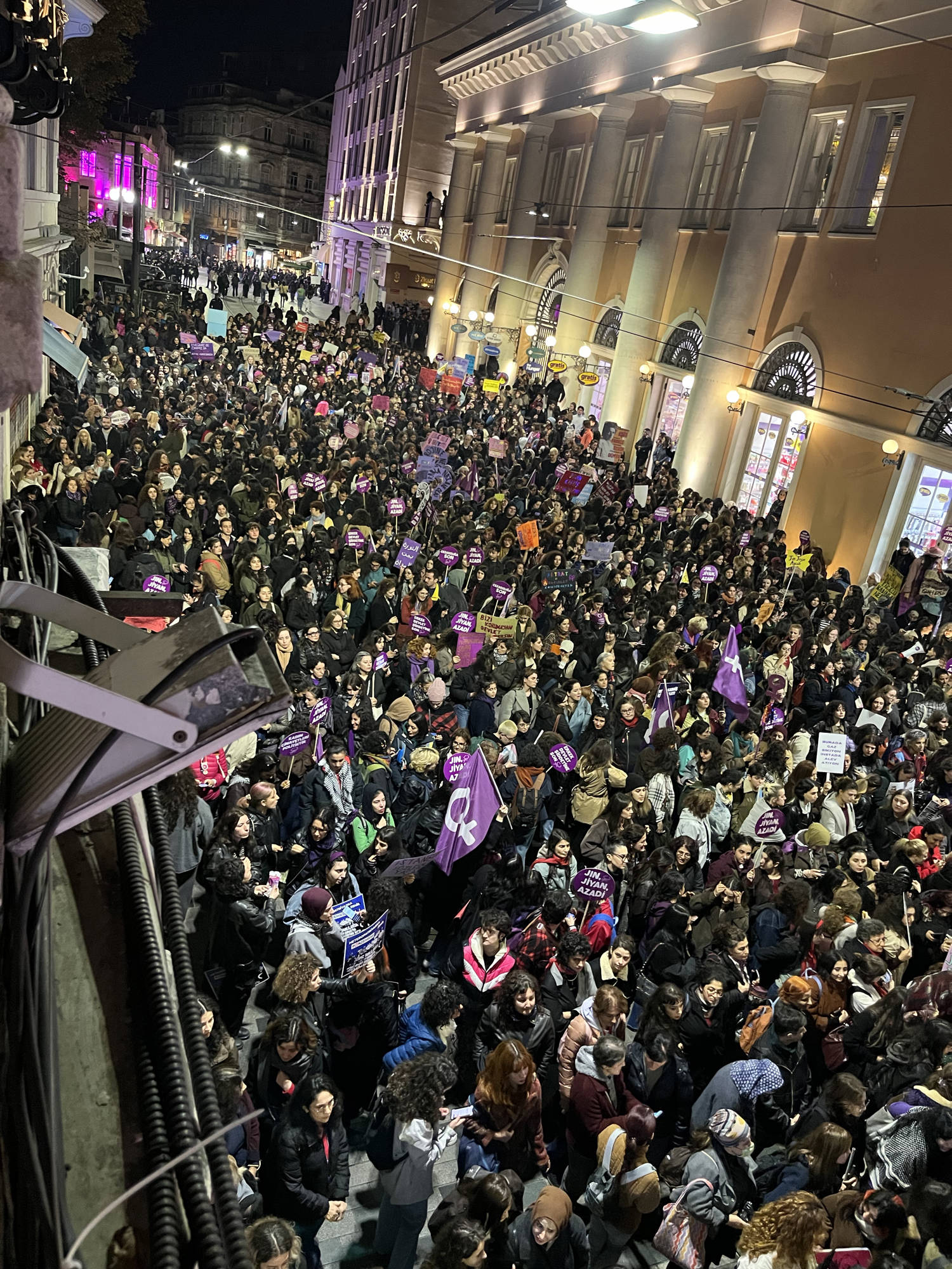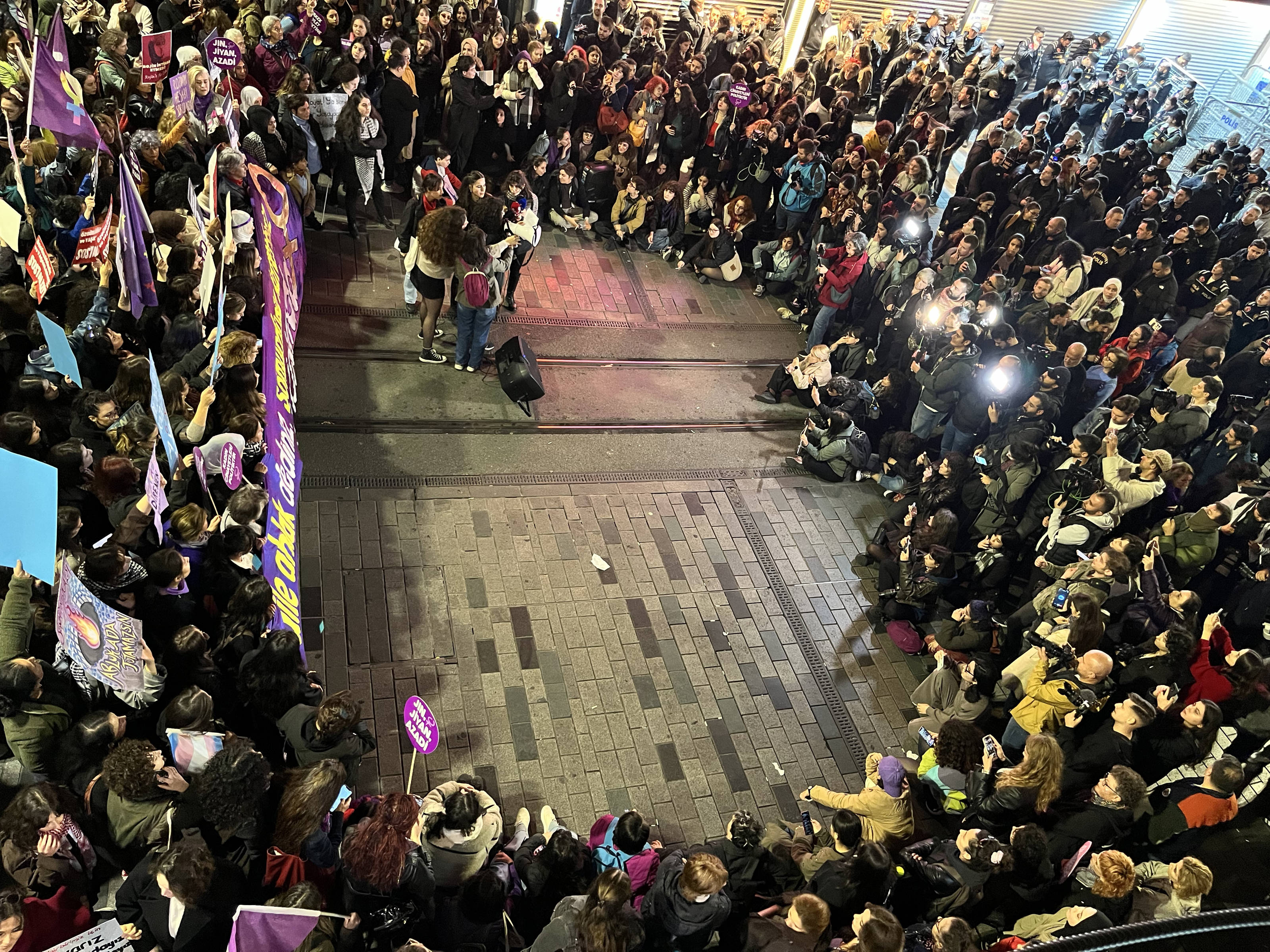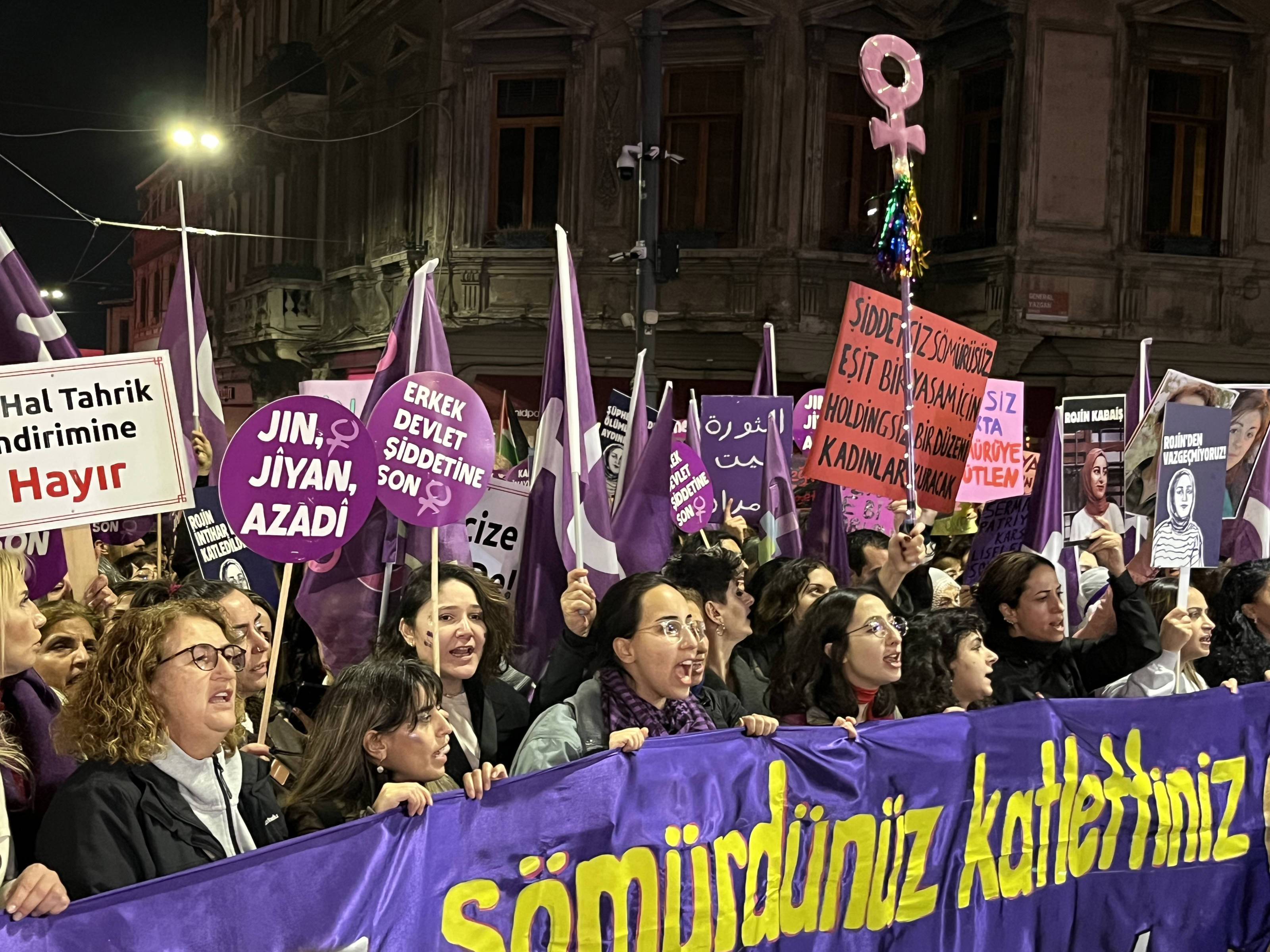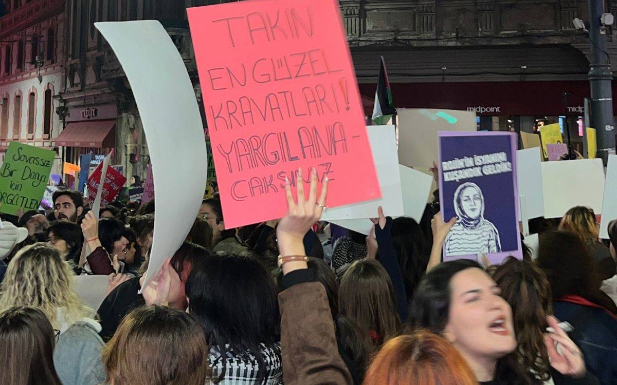 Taksim Tünel Meydanı’nda toplanan feministler “Aile ahlak dediniz, sömürdünüz katlettiniz erkek devlet şiddetine karşı kadınlar isyanda” yazılı pankart taşıdı, İstiklal Caddesi’nde yürüdüler. Aktivistler, yürüyüşün ardından Türkçe ve Kürtçe olarak basın açıklamasını okudular. Bu yıl da ironik ve tepkili pankartlar öne çıktı. Özellikle iktidarın kadın bedeni üzerindeki söylemlerine tepki gösteren dövizler vardı. Homofobik ve transfobik uygulamalar da dövizlerle protesto edildi.