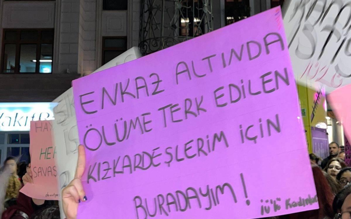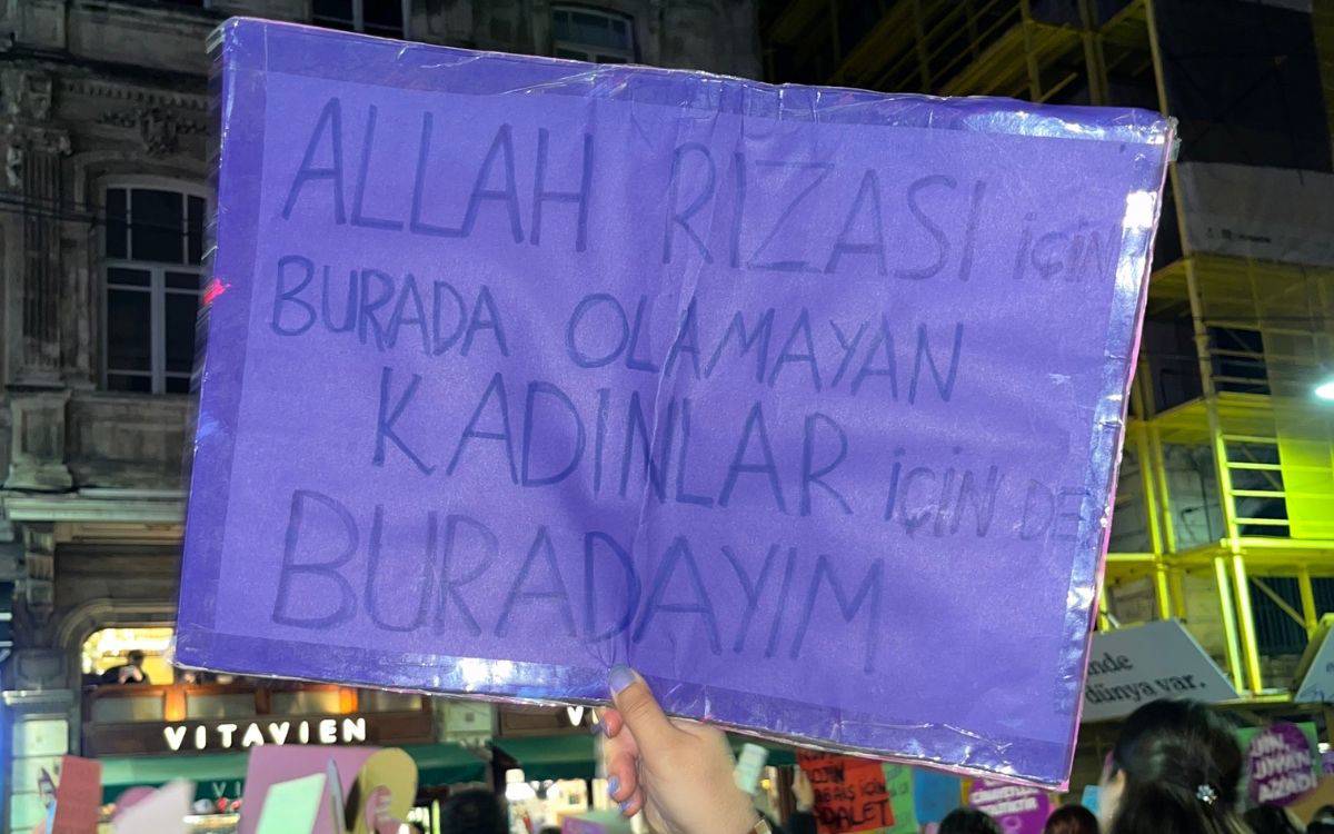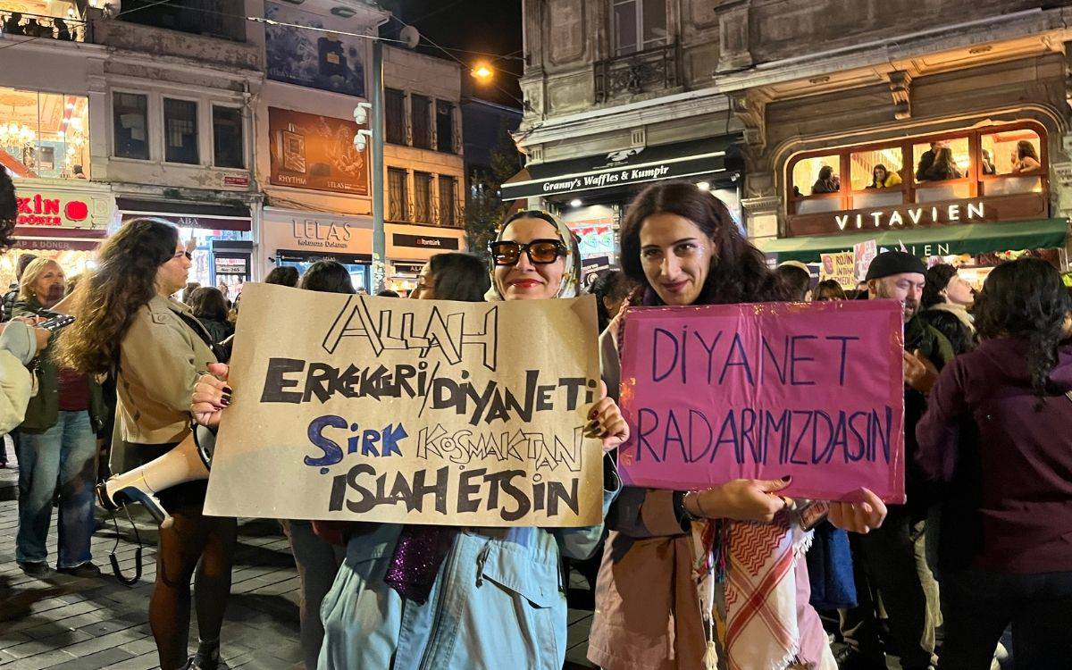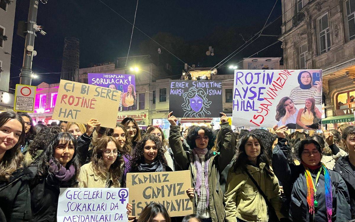 Taksim Tünel Meydanı’nda toplanan feministler “Aile ahlak dediniz, sömürdünüz katlettiniz erkek devlet şiddetine karşı kadınlar isyanda” yazılı pankart taşıdı, İstiklal Caddesi’nde yürüdüler. Aktivistler, yürüyüşün ardından Türkçe ve Kürtçe olarak basın açıklamasını okudular. Bu yıl da ironik ve tepkili pankartlar öne çıktı. Özellikle iktidarın kadın bedeni üzerindeki söylemlerine tepki gösteren dövizler vardı. Homofobik ve transfobik uygulamalar da dövizlerle protesto edildi.