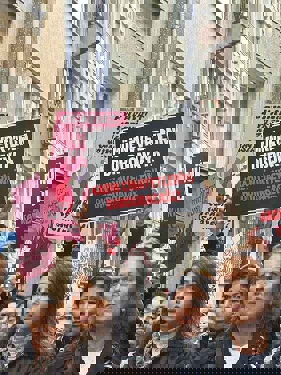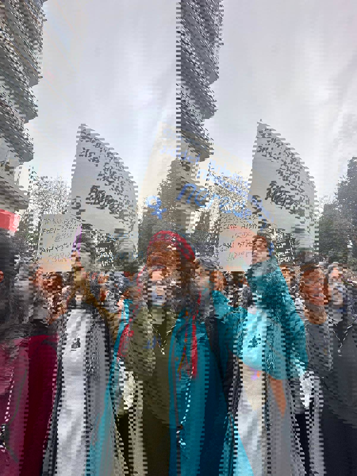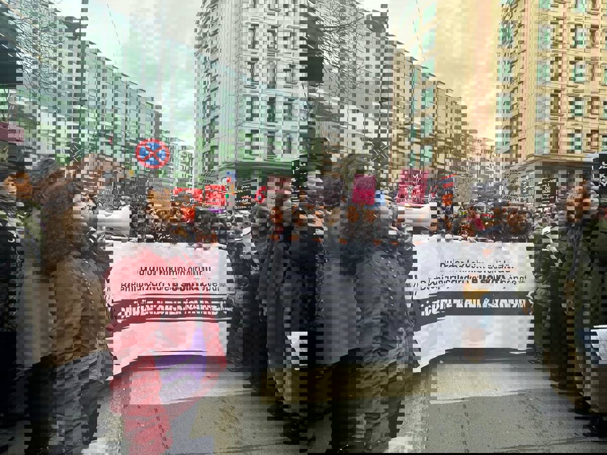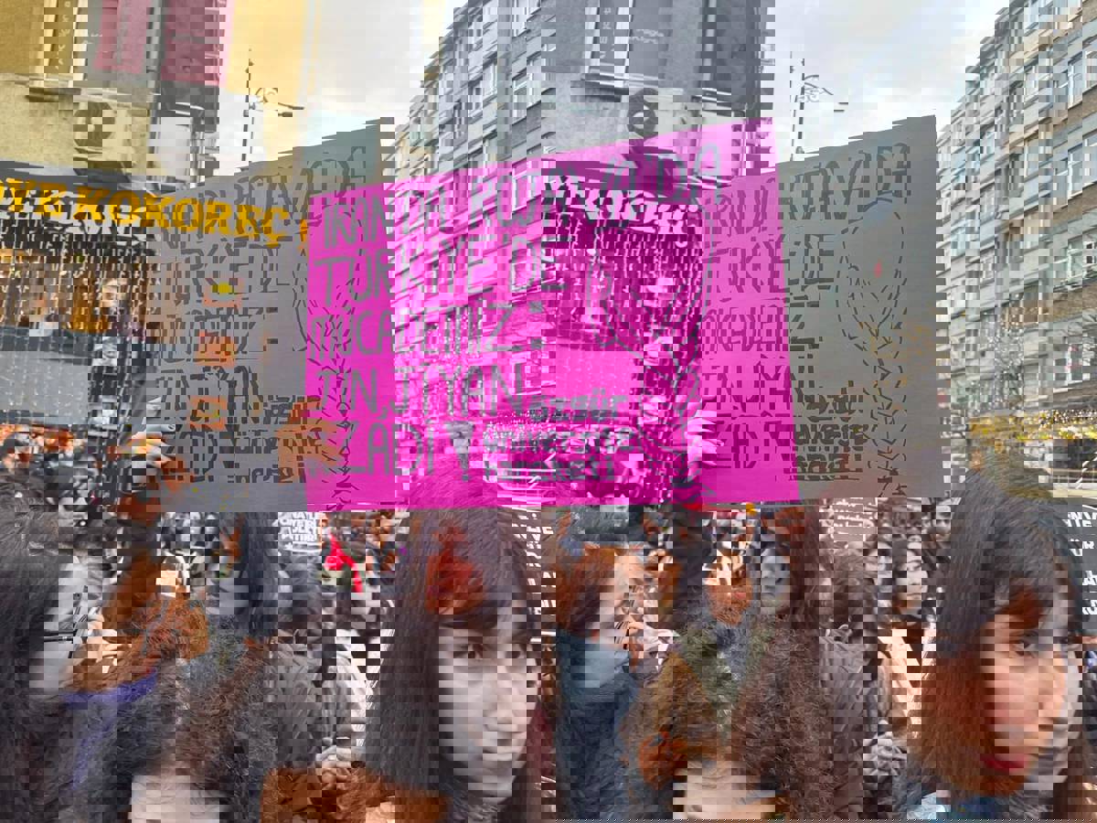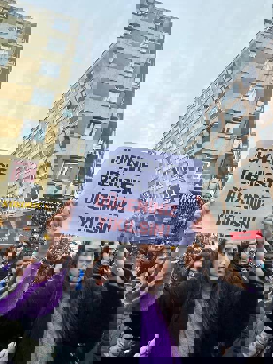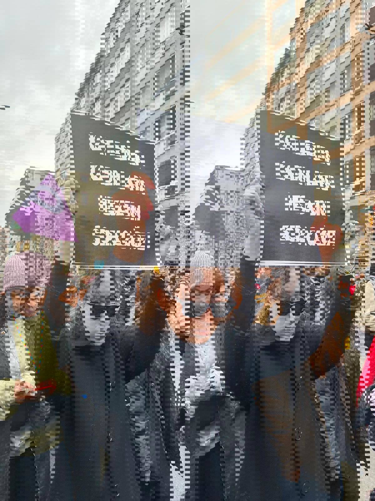 Kadın Cinayetlerine Karşı Feministler’in çağrısıyla İstanbul’da Osmanbey Metro durağında bir araya gelen kadınlar ve LGBTİ+’lar, iki erkeğin öldürdüğü Özbekistanlı göçmen kadın Durdona Khokimova’nın cansız bedenin bulunduğu Kuyulubağ Sokak’a yürüdü.