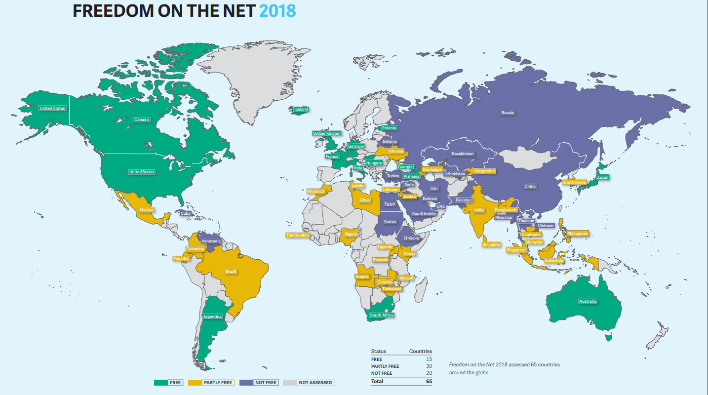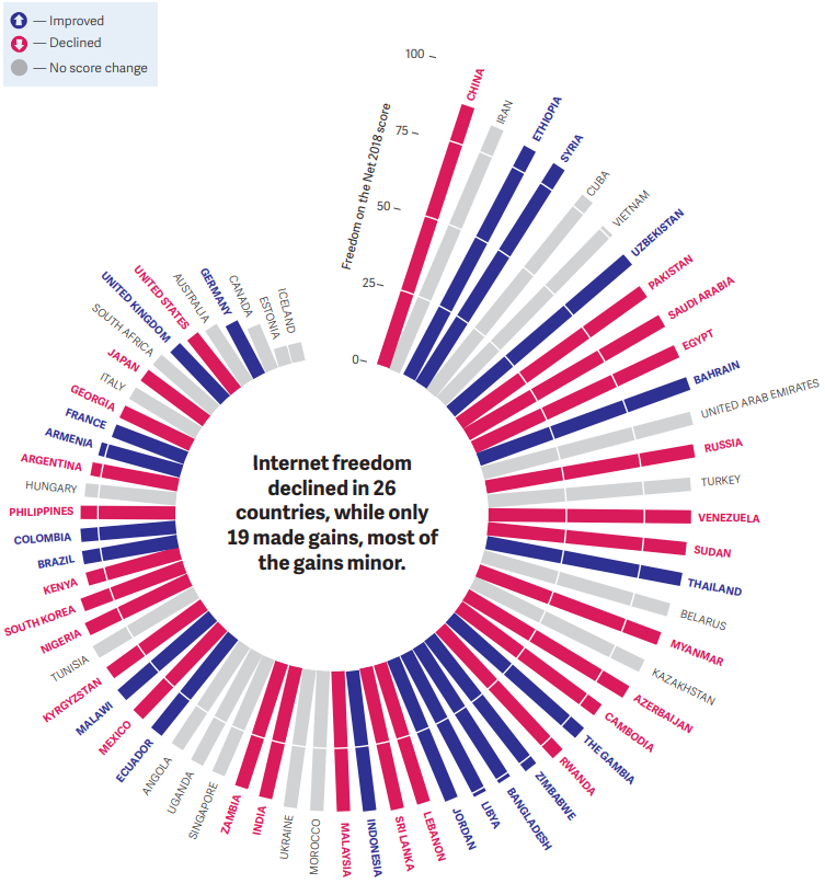 Söz konusu raporda dünya çapında internet özgürlüğünün sekiz yıldır istikrarlı bir şekilde düşüş eğiliminde olmasına yer verilirken bu düşüşün 2018 yılında da devam ettiği belirtildi. Bu duruma gerekçe olarak ise Çin'in uyguladığı kapsamlı sansürcülüğün giderek daha fazla ülke tarafından benimsenmesi gösterildi.