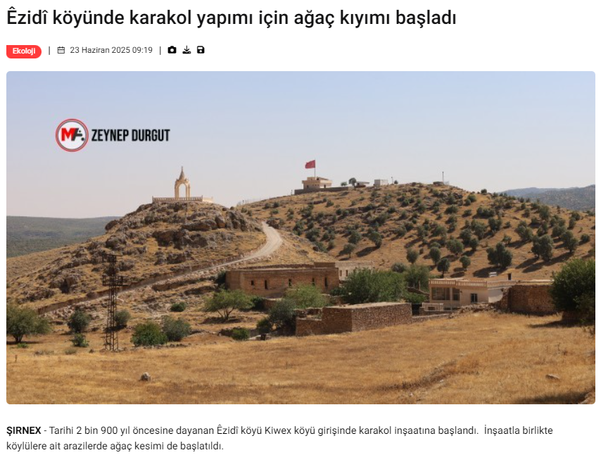 Şırnak’ın İdil ilçesine bağlı Êzidî köyü Mağaraköy’de (Kiwex) gerçekleştirilen ağaç kesimini haberleştiren Mezopotamya Ajansı (MA) muhabiri Zeynep Durgut hakkında soruşturma açıldı.