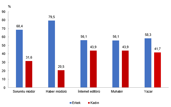 Resmi ilan yayımlayan internet haber sitelerinde çalışanların sayısı ise 3 bin 404 olarak kayıtlara geçti. Çalışanların yüzde 39,7’si muhabir, yüzde 36,3’ü internet editörü, yüzde 11’i sorumlu müdür, yüzde 9,5’i yazar ve yüzde 3,4’ü haber müdürü olarak görev yaptı.