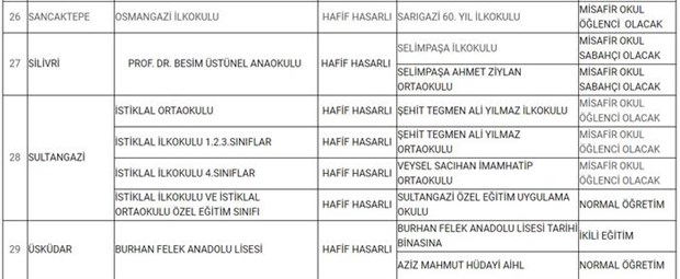 İstanbul Valiliği, depremde hasar gören 29 okuldaki öğrencilerin durumuyla ilgili açıklama yaptı.