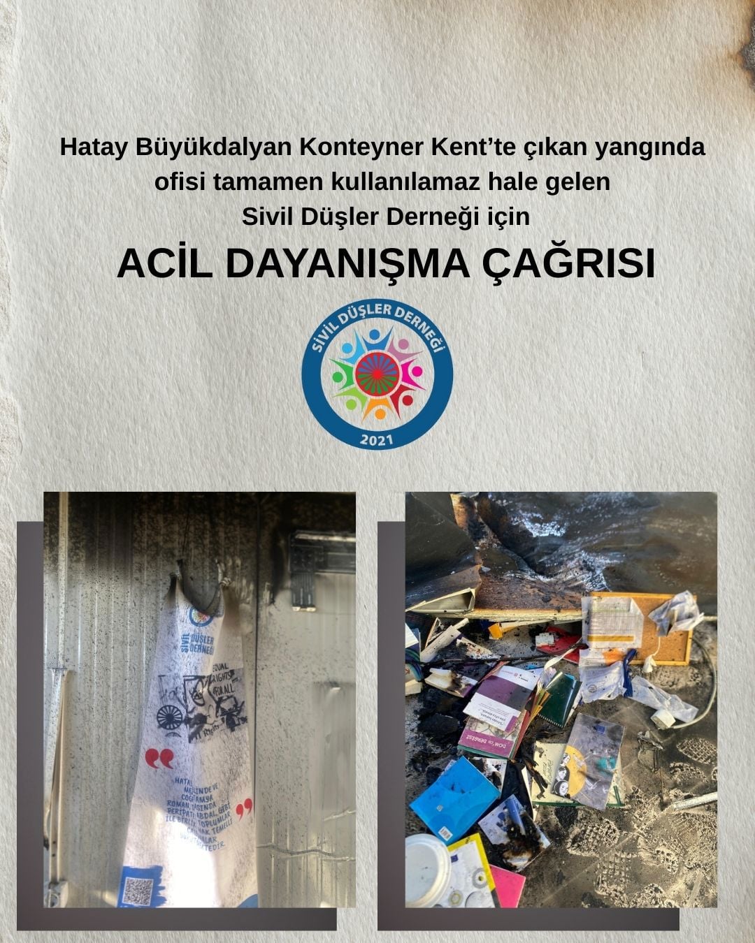 Yangında, Roman, Dom ve Abdal çocuklarla çalışmalar yürüten Sivil Düşler Derneği’ne ait bir konteyner tamamen kullanılamaz hale gelirken, ofiste bulunan eğitim ve atölye malzemeleri büyük ölçüde zarar gördü. Dernek faaliyetlerini geçici olarak durdurmak zorunda kaldı.