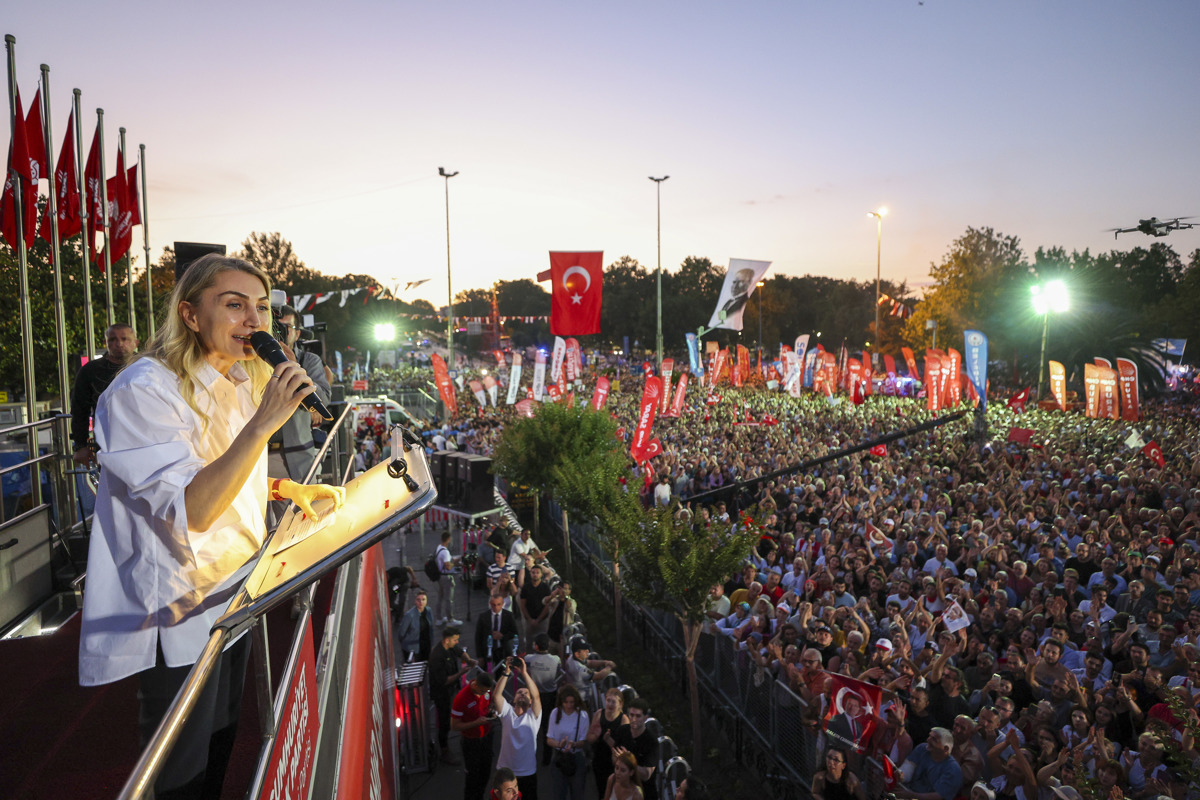 İBB Başkanı İmamoğlu’nun eşi Dr. Dilek Kaya İmamoğlu da eşinin dolaysızca söyleyemediklerini alandakilere ulaştırırken her zaman olduğu gibi kendisini mesajın önüne geçirmemeyi başardı.
