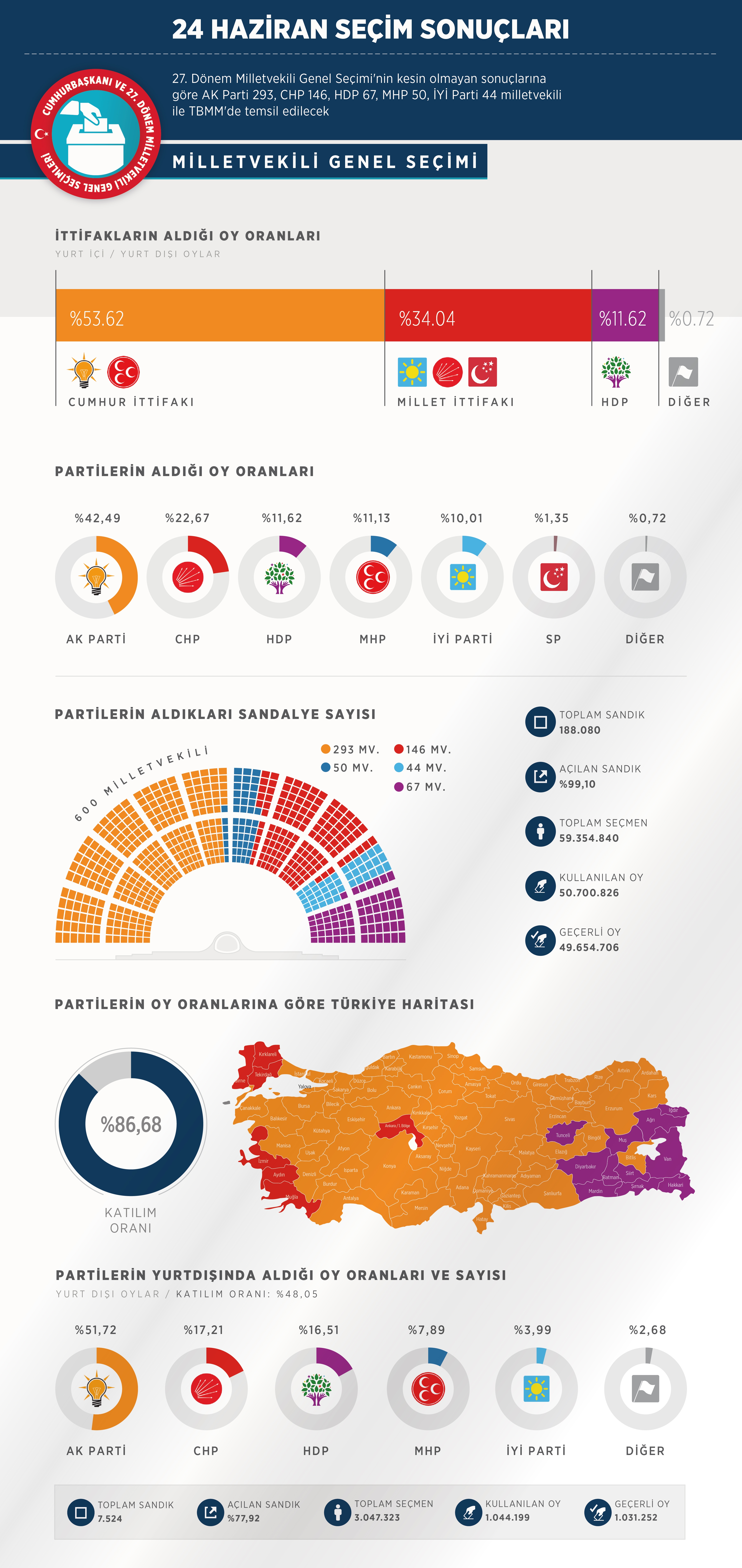 Cumhurbaşkanı ve 27. Dönem Milletvekili Seçimleri'nin resmi olmayan sonuçlarına göre Anadolu Ajansı iki ayrı infografik hazırladı.