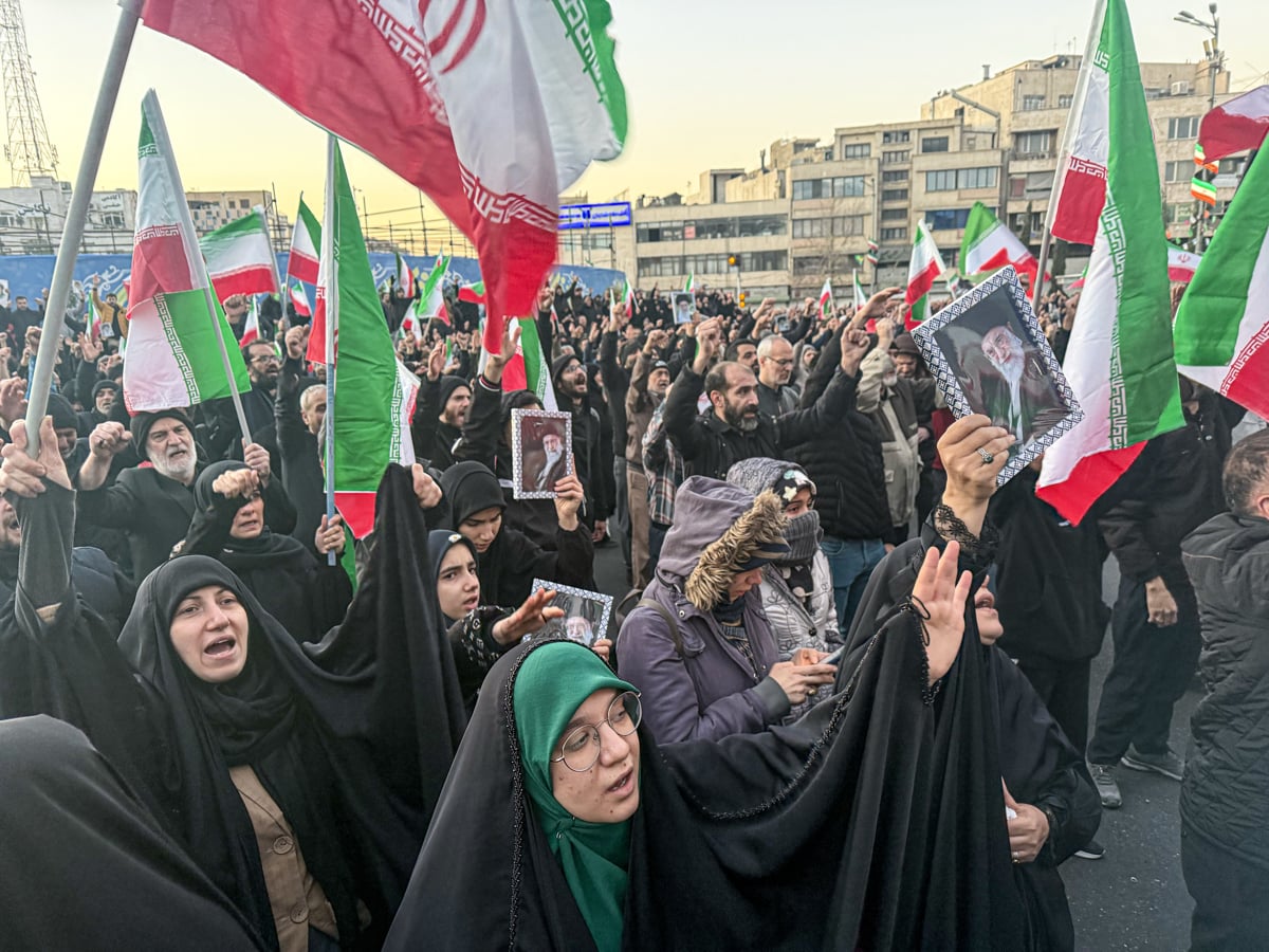 Tahran’da İnkılap Meydanı’nda toplanan çok sayıda kişi, ellerinde İran bayrakları ve Hamaney posterleriyle ABD ve İsrail karşıtı sloganlar attı.