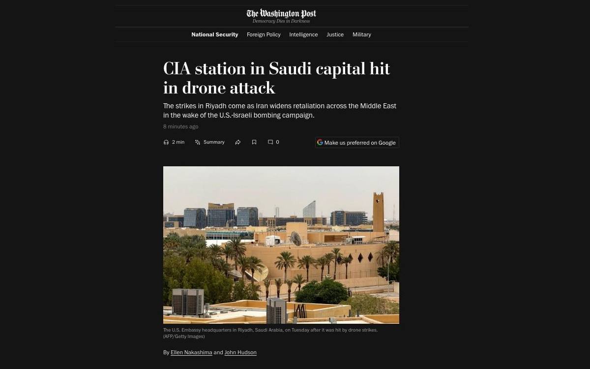 00.50 | Washington Post: Riyad’daki CIA ofisi vuruldu