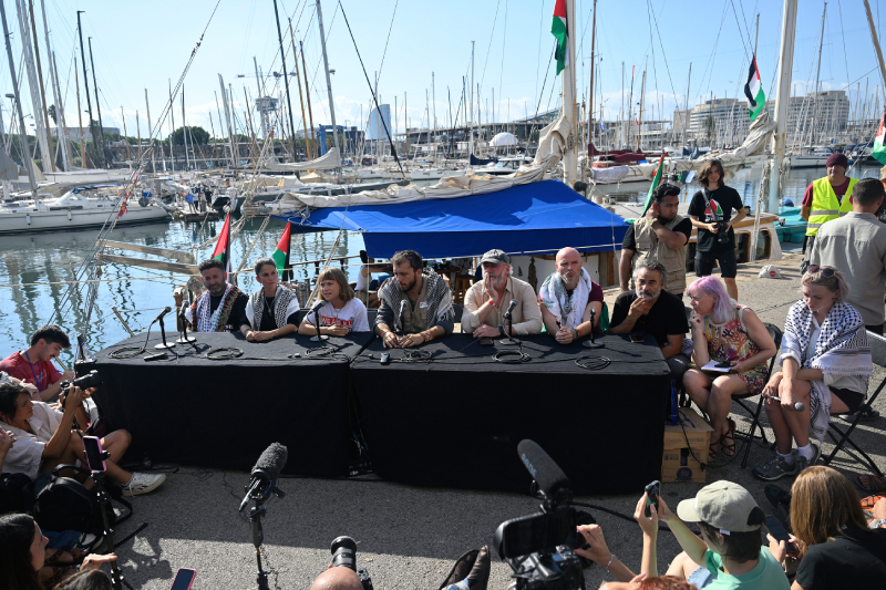 Barselona Limanı'ndaki teknelerin yola çıkmasından önce düzenlenen basın toplantısında konuşan Thunberg, "Gazze, baskının, soykırımın ve etnik temizliğin açık bir örneğidir. İsrail öldürüyor ve tüm dünya bu soykırımı canlı izliyoruz. İnsanların telefonlarından canlı yayında soykırımı izlerken hayatlarına devam etmelerini ve hiçbir şey olmuyormuş gibi davranmalarını görmekten dehşete düşüyorum. İsrail, Filistin halkını yok etmek istiyor. İsrail'in bu yaptığı, insanları harekete geçmeye, koltuklarından kalkıp örgütlenmeye teşvik etmezse, ne teşvik eder bilmiyorum." diye konuştu.