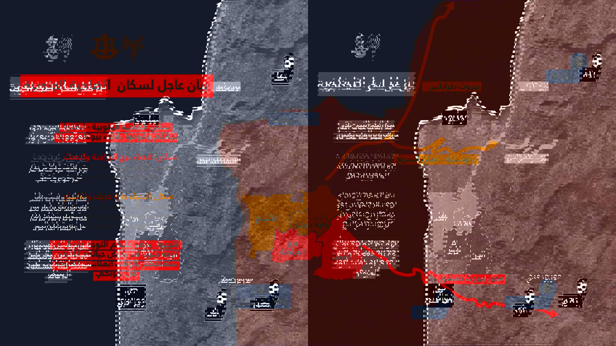 İsrail Ordu Sözcüsü Avichay Adraee, X hesabından yaptığı paylaşımda, “Hayatınızı kurtarın ve evlerinizi derhal boşaltın” diyerek Burc el-Baracine ve Hades mahallelerinde ikamet edenlerin Beyrut-Şam yolu üzerinden Cebel-i Lübnan’a doğru; Hureyk ve Şiyah mahallelerinde yaşayanların Beyrut-Trablus yolu üzerinden kuzeye doğru gitmelerini istedi.