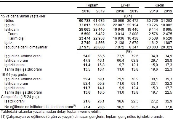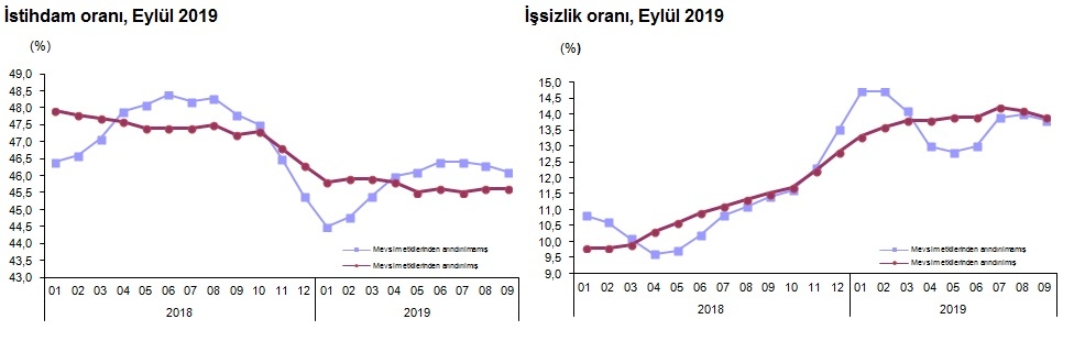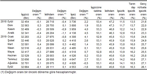 İstihdam edilenlerin sayısı Eylül'de geçen yılın aynı dönemine göre 623 bin kişi azalarak 28 milyon 440 bin kişi oldu, istihdam oranı da yüzde 46,1'e gerilerdi. İşsiz sayısı ise geçen yılın aynı dönemine göre 817 bin kişi artarak 4 milyon 566 bin kişi oldu.