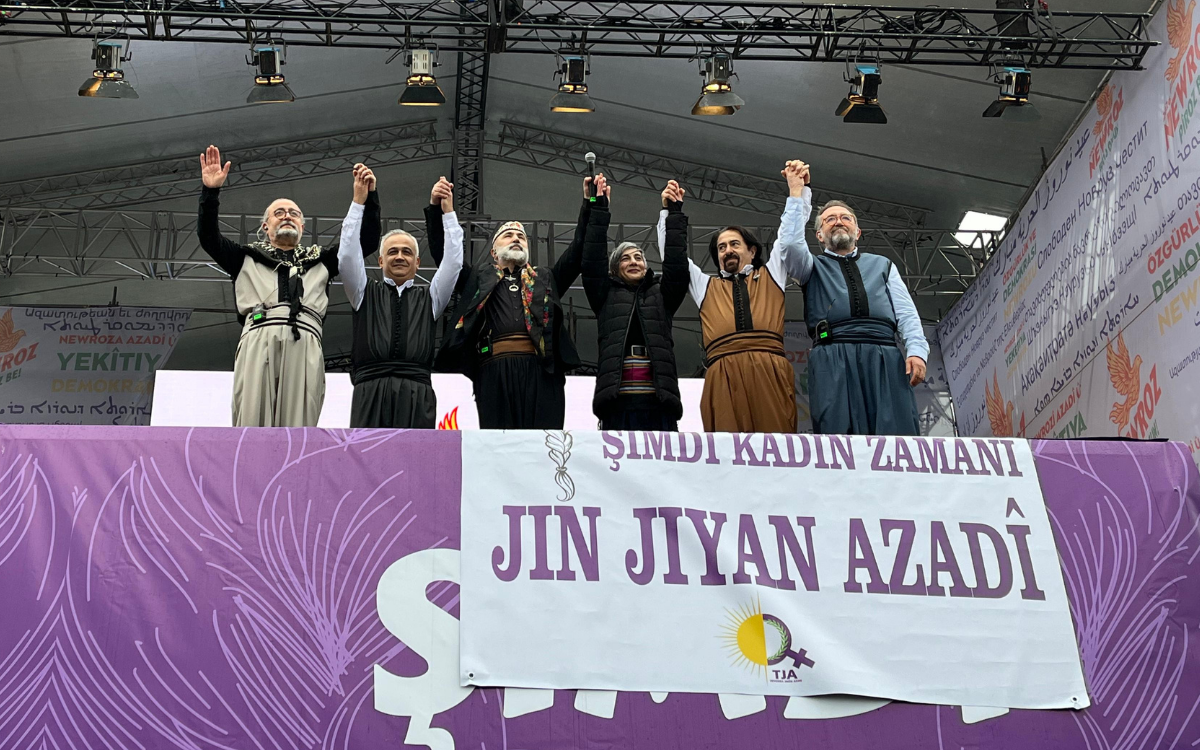 İmralı sekreterya üyesi Çetin Arkaş, İstanbul Newrozu’nda yaptığı konuşmada, savaşırken gösterilen cesaretin barışta da gösterilmesi gerektiğini vurguladı ve tüm halklara, inançlara barış elini tutma çağrısında bulundu. Ortadoğu’daki çatışma ve yangın ortamına dikkat çeken Arkaş, bölgedeki sorunların yalnızca dış müdahalelerle çözülemeyeceğini, kendi iç sorunlarını göremeyen ülkelerin krizlerini derinleştirdiğini söyledi.
