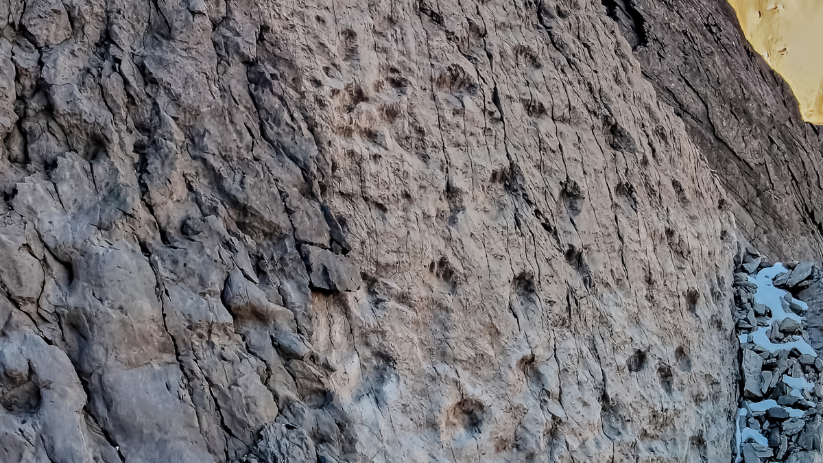 Ayak izlerinin neden dikey bir şekilde yamaçta yer aldığı sorusunu Dal Sasso şöyle yanıtlıyor: