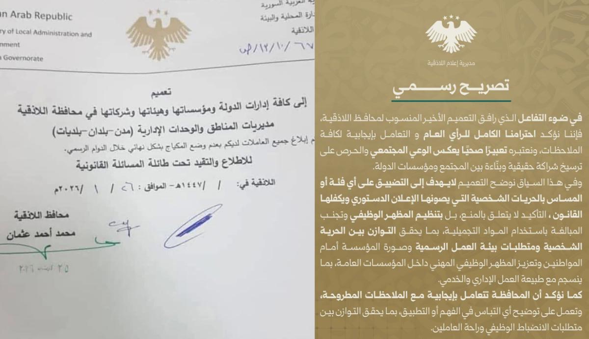 Genelge kamuoyunda ve sosyal medyada geniş yankı uyandırdı. Eleştirilerin ardından Lazkiye Valiliği 27 Ocak’ta bir açıklama yayımladı.