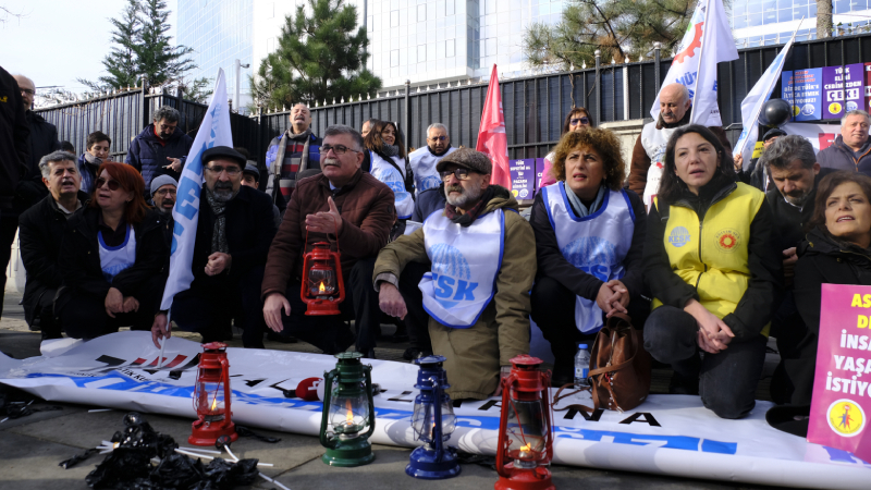 Konuşmaların ardından TÜİK önünde kısa bir süre oturma eylemi gerçekleştiren KESK'liler, eylemlerini sloganlarla sonlandırdı.