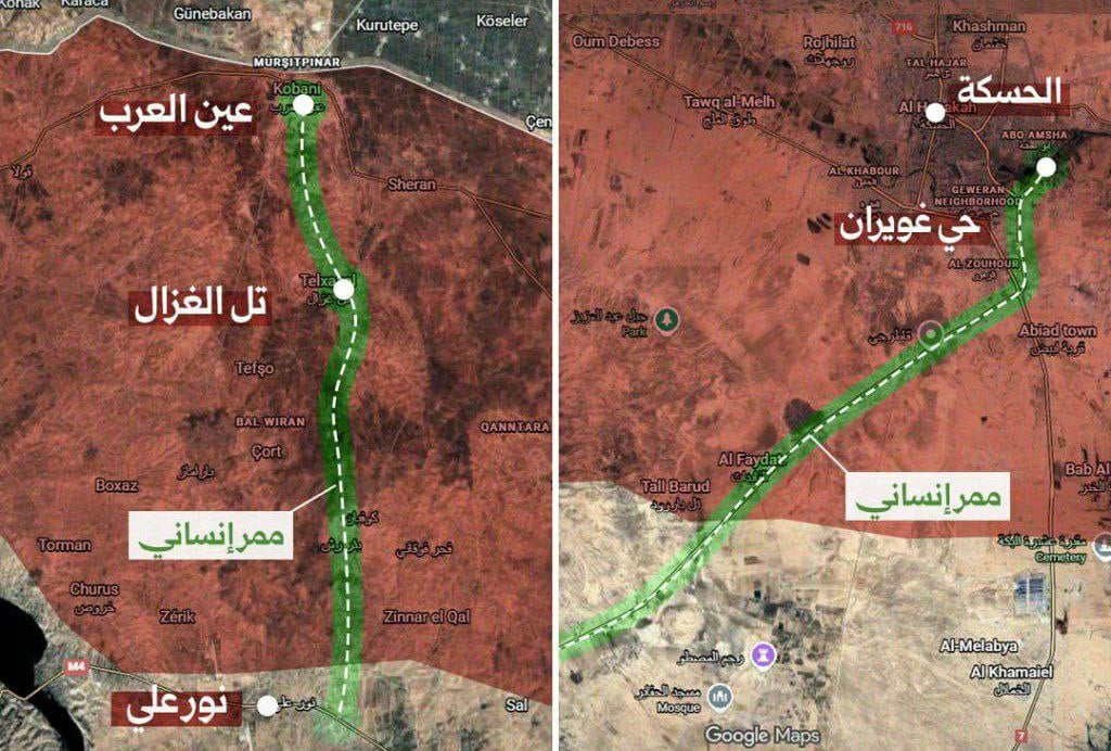 SANA’nın aktardığına göre ilk koridor, Haseke Valiliği ile koordinasyon halinde Rakka–Haseke yolu üzerinde, Tel Davud köyü yakınında oluşturuldu. İkinci koridor ise Halep Valiliği ile koordinasyon halinde M4 karayolu üzerindeki Kobanî kavşağında, Nur Ali köyü yakınında açıldı.