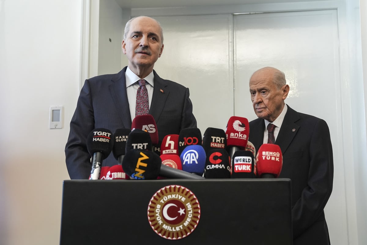 Yaklaşık 30 dakika süren ziyaretin ardından Kurtulmuş, Bahçeli'yle kameralar karşısına geçerek açıklama yaptı. "Türkiye için tarihi bir eşikti" diyen Kurtulmuş, "Henüz iş bütünüyle bitmiş değil. Ama Meclis üzerine düşen sorumluluğu yerine getirmiştir. Daha evvel defalarca denenmiş olan, terörün bitirilmesiyle ilgili denenmiş olan çalışmalar ne yazık ki çeşitli nedenlerle Meclis zeminine taşınamamış ve partilerimizin ortak kanaatiyle belirli bir noktaya getirilememişti" dedi.