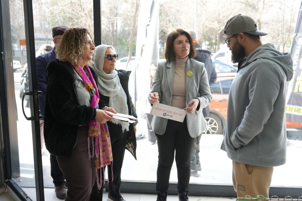 Şandeyê bi dikandarên bazarê û welatiyên li wir re sohbet kir, guh da daxwaz û pêşniyarên wan û tekez kir ku parastina mîrateya çandî û bikaranîna zimanê dayikê di hemû warên jiyana rojane de, bi taybetî jî di qada bazirganiyê de pir girîng e.