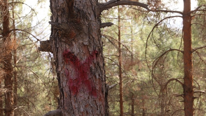 Li gorî nûçeya Ajansa Mezopotamyayê ji bo rêya ku Rêvebiriya Bajar a Çandinî û Daristanan dixwaze çêbike, dar tên îşaretkirin. Piştre jî darên hatine îşaretkirin tên birîn.